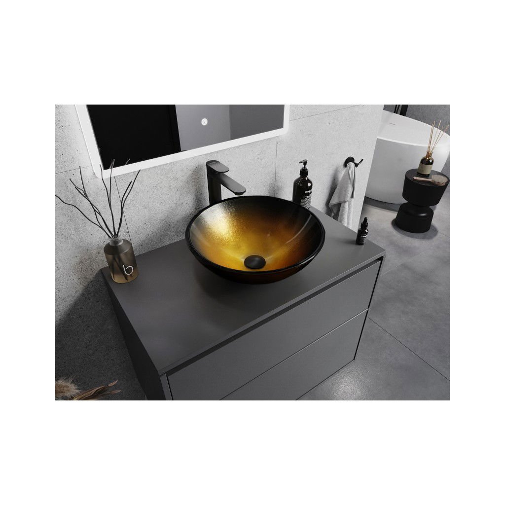 Mexen Mira, üveg asztali mosogató 42 x 42 x 14,5 cm, sötét arany, 24124251