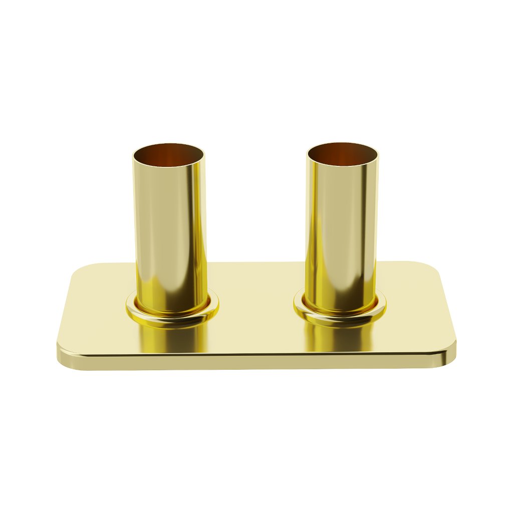 A dupla, négyzet alakú, csöves rozetta készlet a radiátor lefedésére szolgál, alsó, kombinált, dekoratív csatlakozás. Csatlakozás PEX és rézcsövek szereléséhez. A rozetta 2 furattal rendelkezik a radiátor csatlakozások átvezetésére, 50 mm-es osztásközzel. Az 50 mm hosszú maszkoló hüvelyek 16 mm - PEX és 15,18 mm - réz átmérőjű összekötő csőbe illeszkednek. Speciálisan a megfelelő típusú sárgaréz használata, amelyből a perselyek készültek, megkönnyíti a megfelelő hosszúságú vágást. A festékbevonatú rozsdamentes rozetta dupla védelemmel van ellátva a kondenzációs korrózió ellen.
