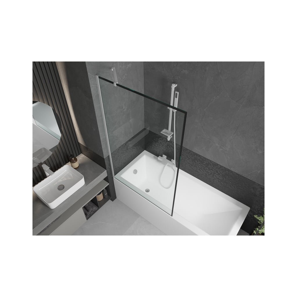 Mexen Next, kádparaván 1 szárny 100 x 150 cm, fix szárny, 6 mm átlátszó üveg fekete mintával, fehér profil, 895-100-000-00-70-20