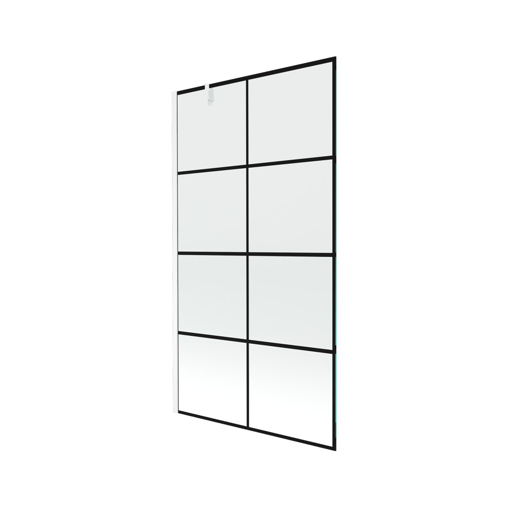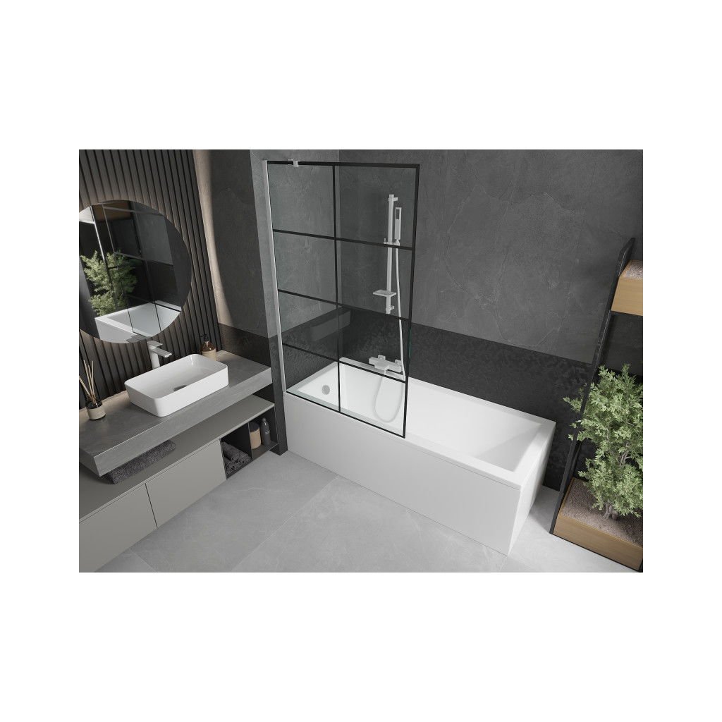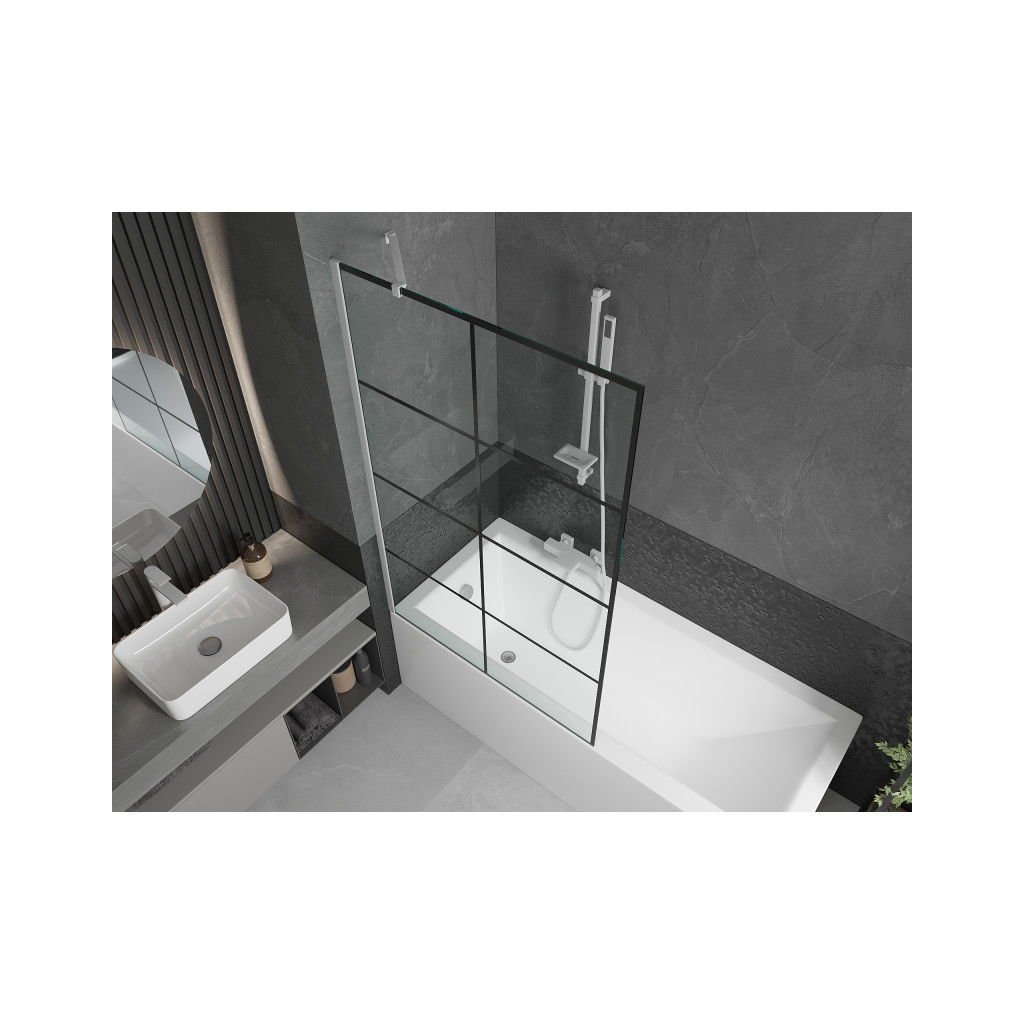 Mexen Next, kádparaván 1 szárny 100 x 150 cm, fix szárny, 6 mm átlátszó üveg fekete mintával, fehér profil, 895-100-000-00-77-20