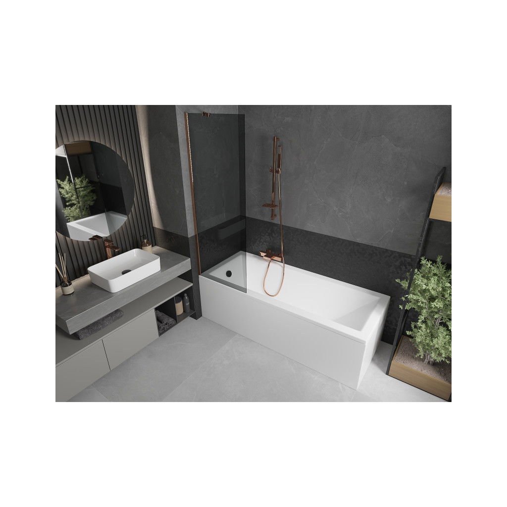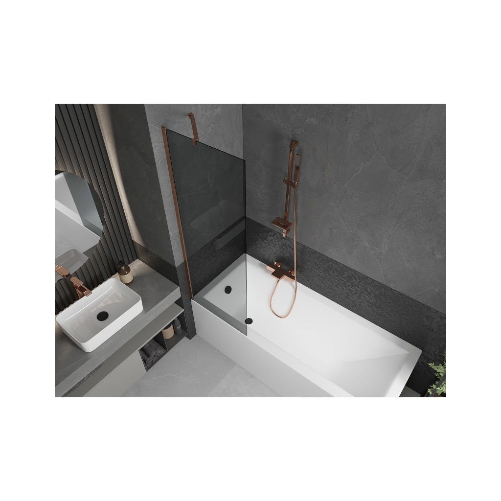 Mexen Next, kádparaván 1 szárny 60 x 150 cm, fix szárny, 6 mm szürke üveg, rózsa arany profil, 895-060-000-00-40-60