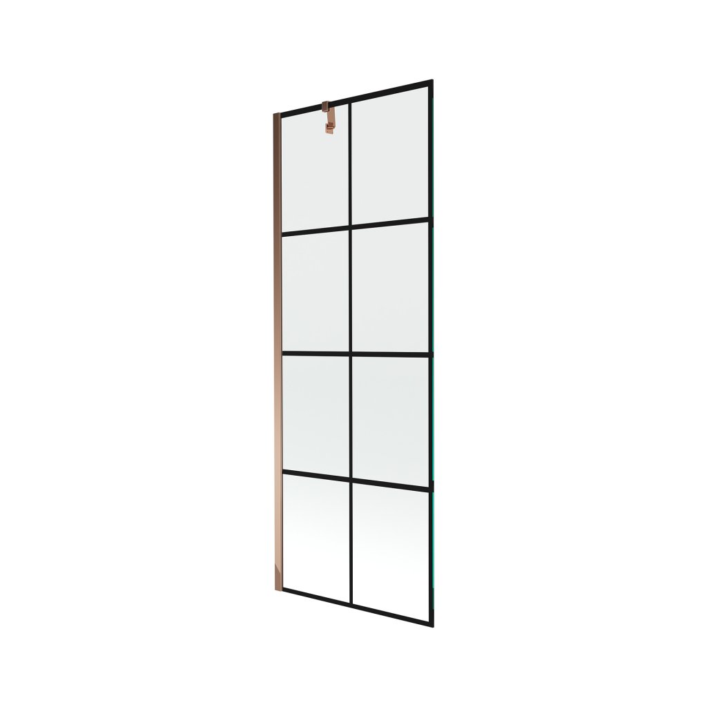 Mexen Next, kádparaván 1 szárny 70 x 150 cm, fix szárny, 6 mm átlátszó üveg fekete mintával, rózsa arany profil, 895-070-000-00-77-60