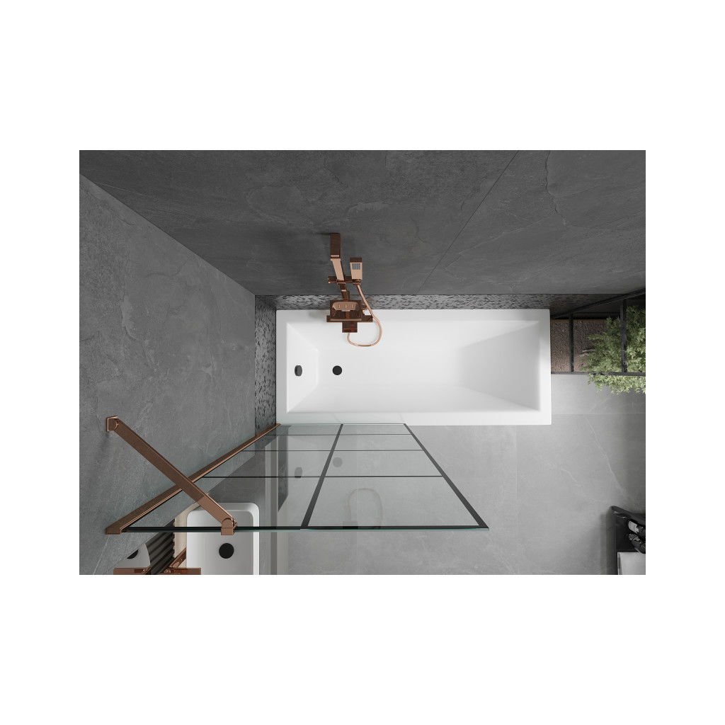 Mexen Next, kádparaván 1 szárny 80 x 150 cm, fix szárny, 6 mm átlátszó üveg fekete mintával, rózsa arany profil, 895-080-000-00-77-60