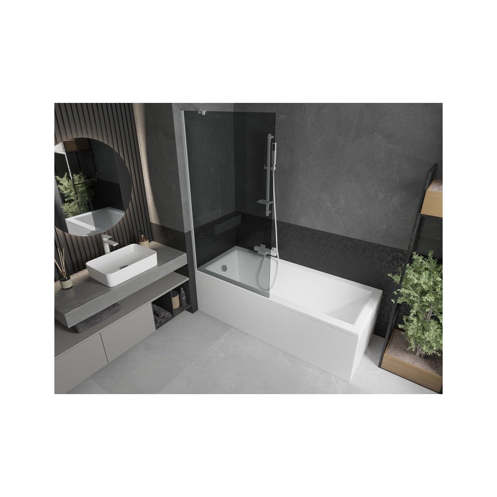 Mexen Next, kádparaván 1 szárny 90 x 150 cm, fix szárny, 6 mm szürke üveg, fehér profil, 895-090-000-00-40-20