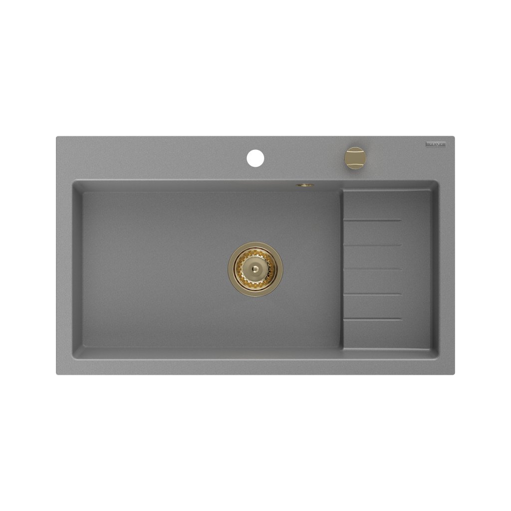 Mexen Omar, 1 kamrás gránit mosogató 800x480x210 mm, szürke, arany szifon, 6520801005-71-G