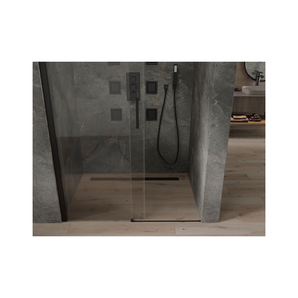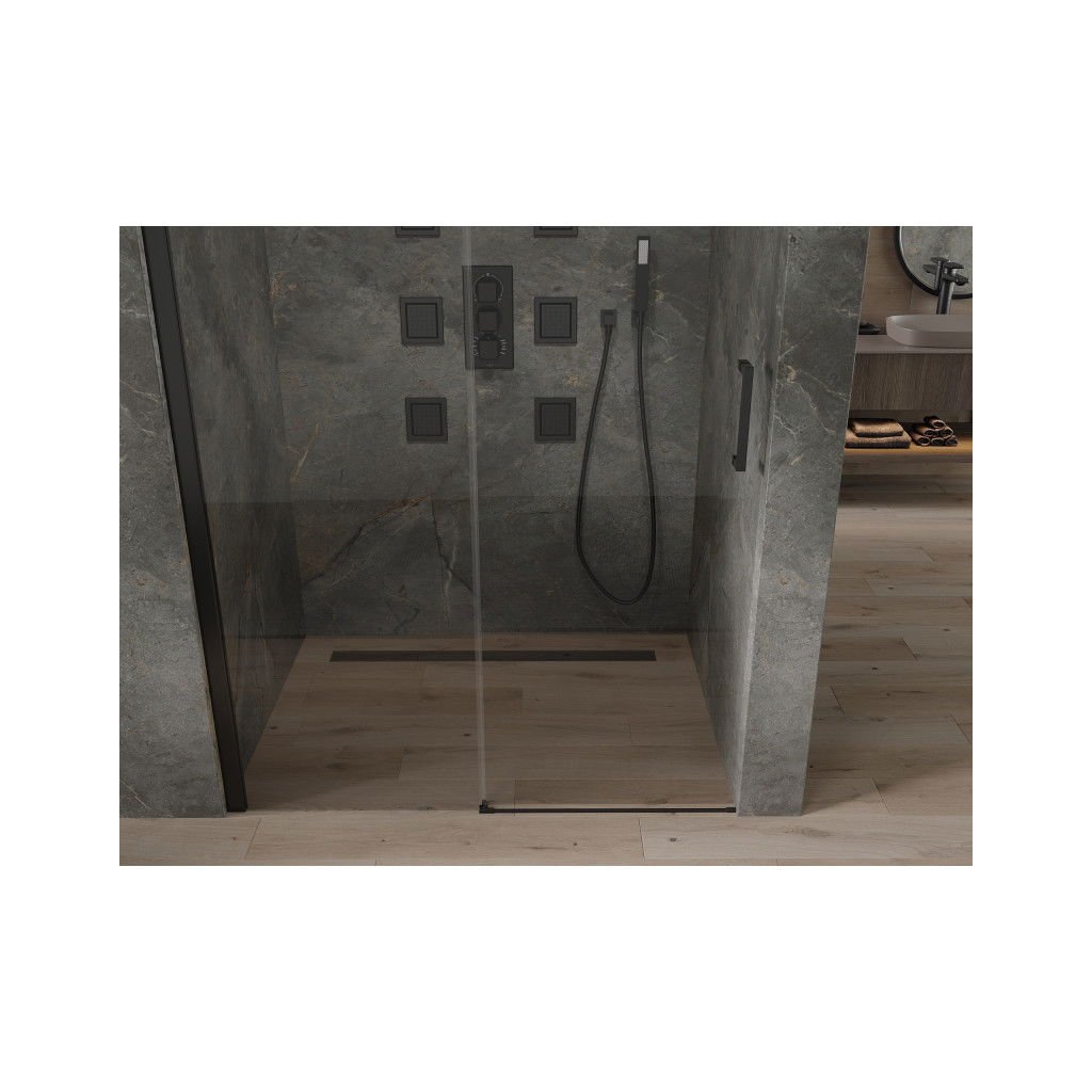 Mexen OMEGA zuhanyajtó nyitásig 130 cm, fekete-átlátszó, 825-130-000-70-00