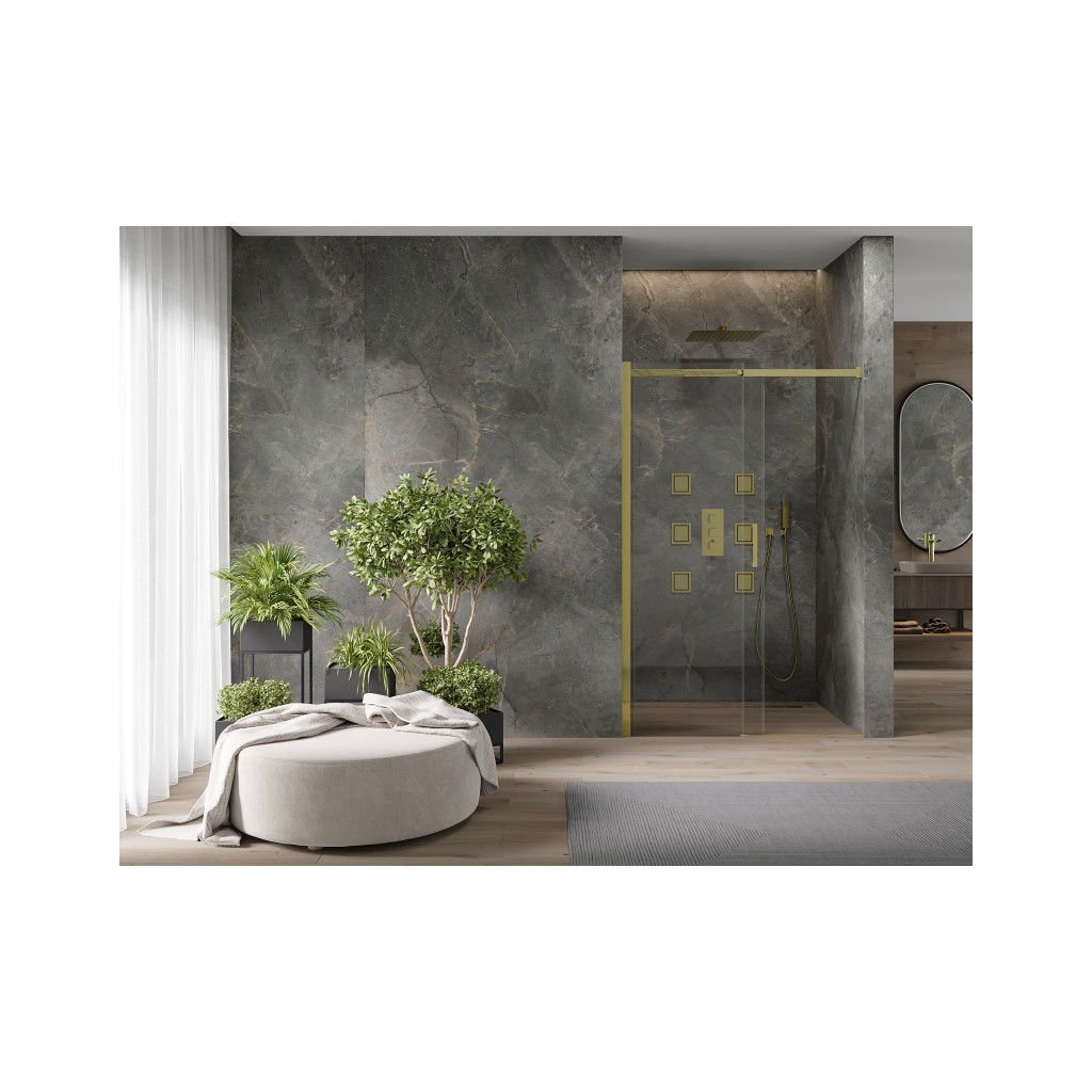Mexen OMEGA tolózuhanyajtó 140 cm, arany átlátszó, 825-140-000-50-00