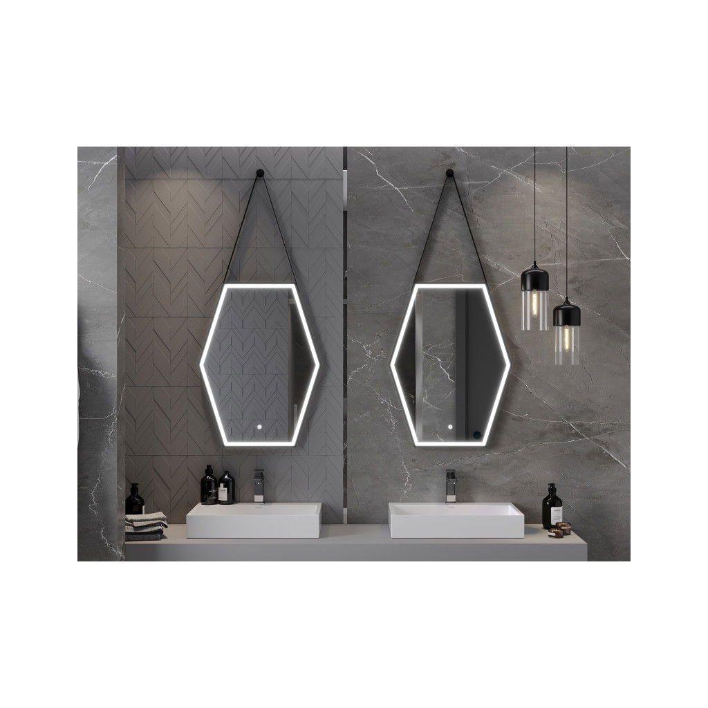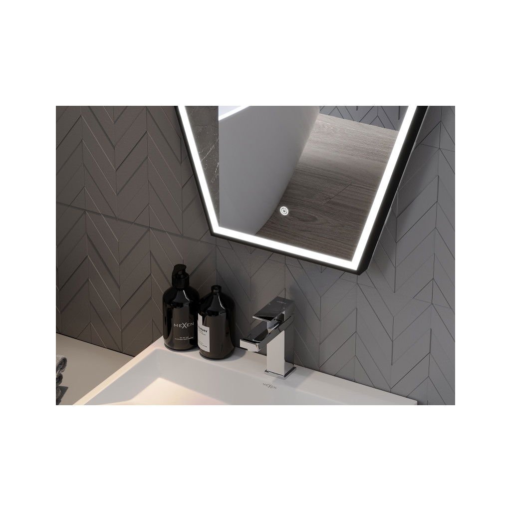 Mexen Orla, LED fürdőszobai tükör háttérvilágítással és fekete kerettel 60x80 cm, 6000K, páramentesítő, 9815-060-080-611-70