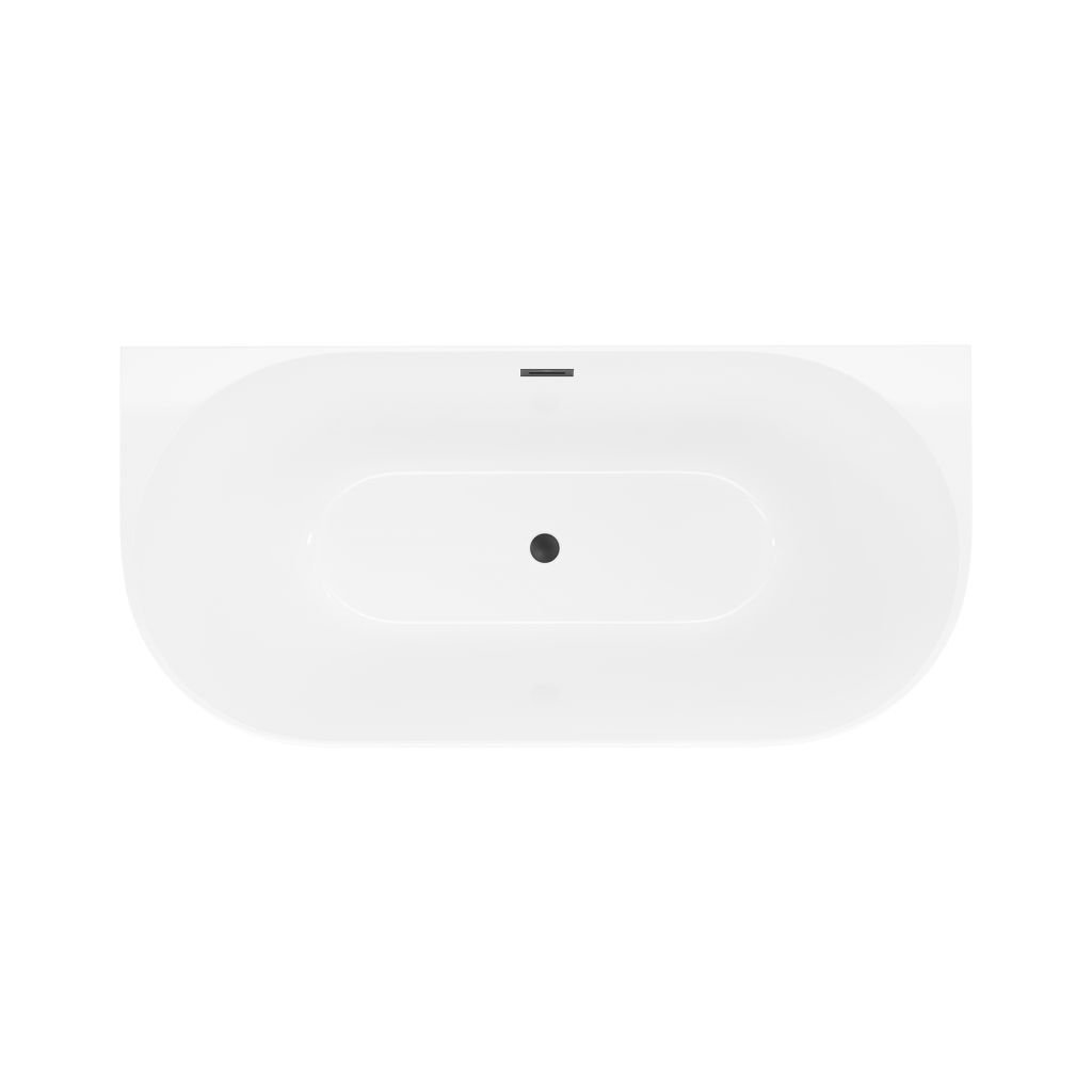 Mexen Oval Slim, szabadon álló fali kád 170 x 80 cm, fényes fehér, matt fekete túlfolyóval, 52661708000-70