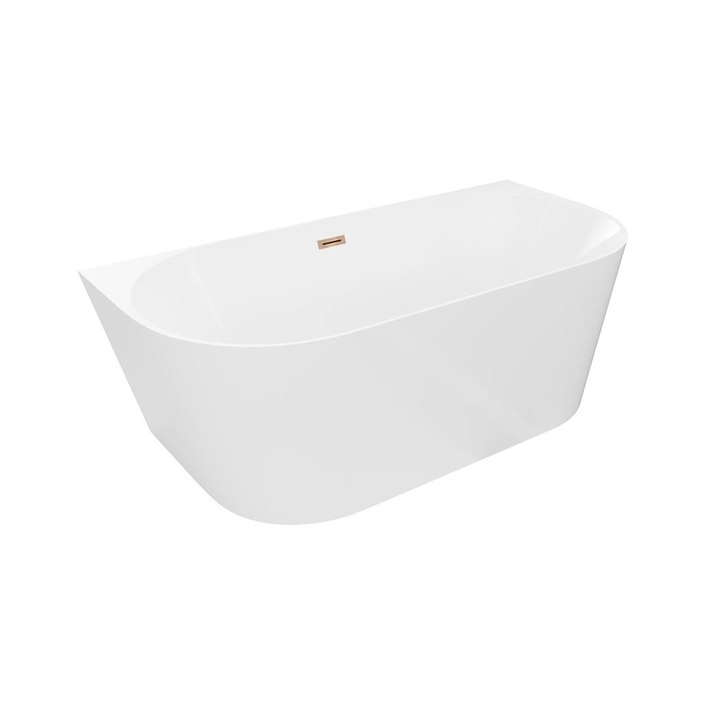 Mexen Oval Slim, szabadon álló fali kád 170 x 80 cm, fényes fehér, rozéarany túlfolyóval, 52661708000-60