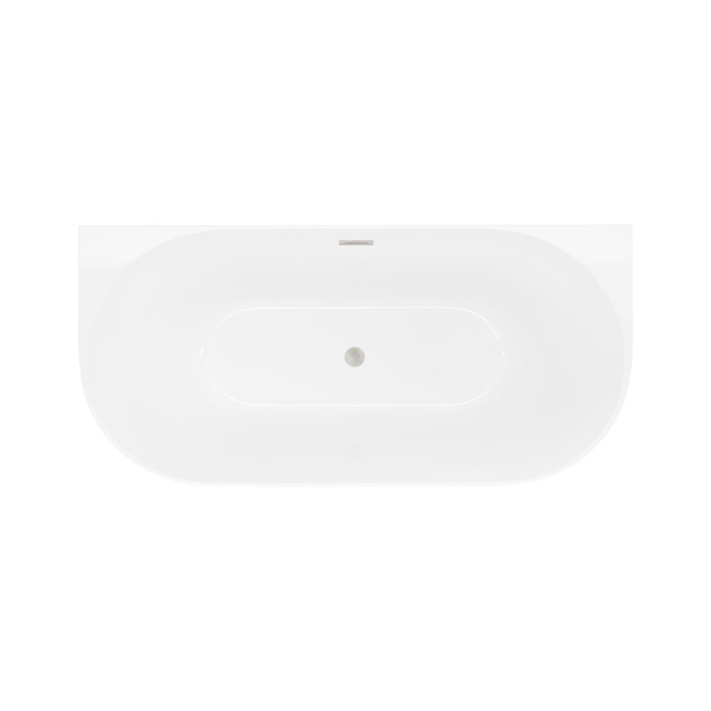Mexen Oval Slim, szabadon álló fali kád 170 x 80 cm, fényes fehér, szálcsiszolt acél túlfolyóval, 52661708000-97