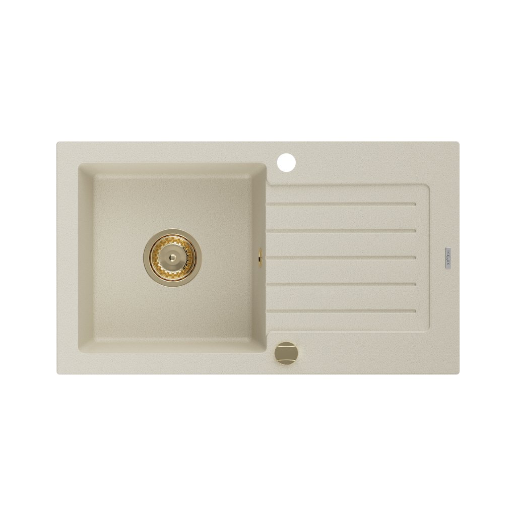 Mexen Pablo, gránit mosogató 752x436x161 mm, 1 kamrás, bézs, arany szifonnal, 6510751010-69-G