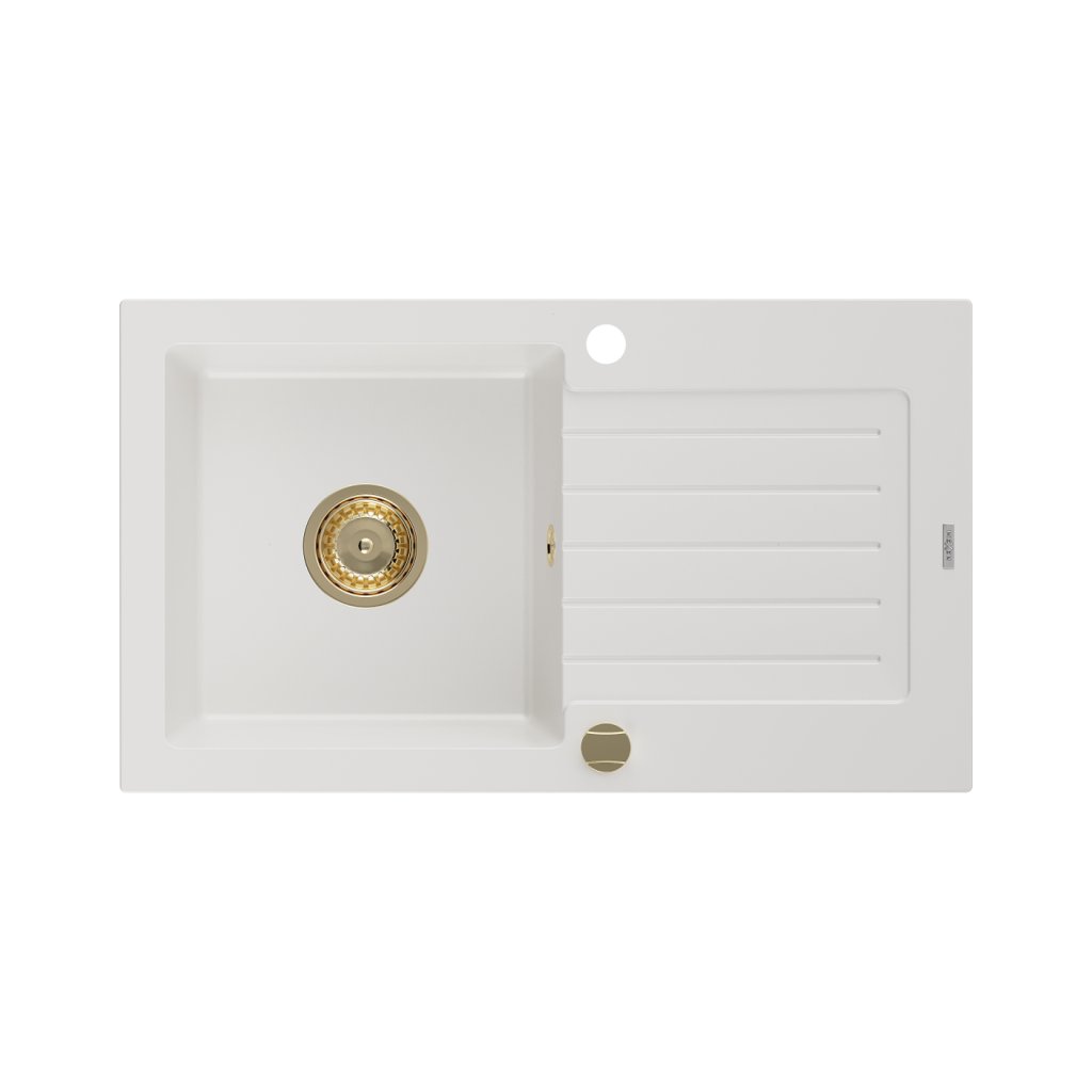 Mexen Pablo, gránit mosogató 752x436x161 mm, 1 kamrás, fehér, arany szifonnal, 6510751010-20-G
