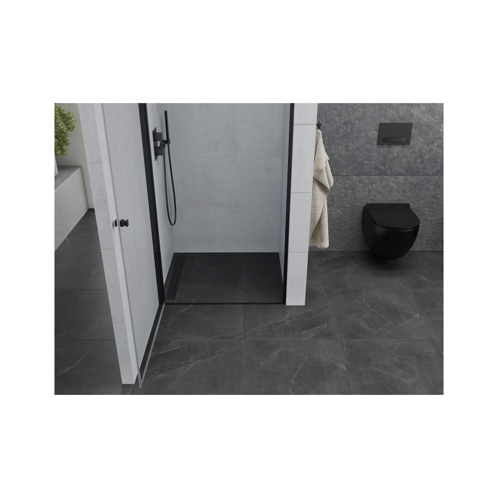 Mexen Pretoria, 1 szárnyú zuhanyajtó 100 cm-re nyitható, 6 mm átlátszó üveg, fekete profil, 852-100-000-70-00