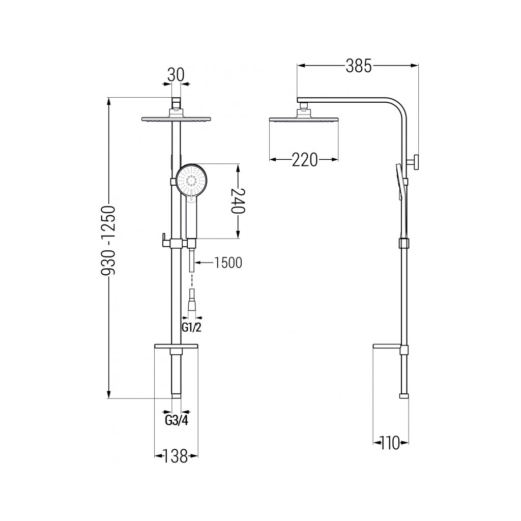 - Bármilyen zuhany vagy kád csaptelep csatlakoztatható G 3/4" csatlakozáshoz