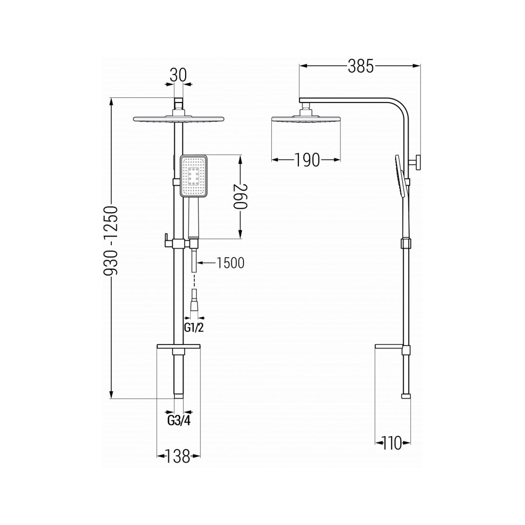 - Bármilyen zuhany vagy kád csaptelep csatlakoztatható G 3/4" felső csatlakozással