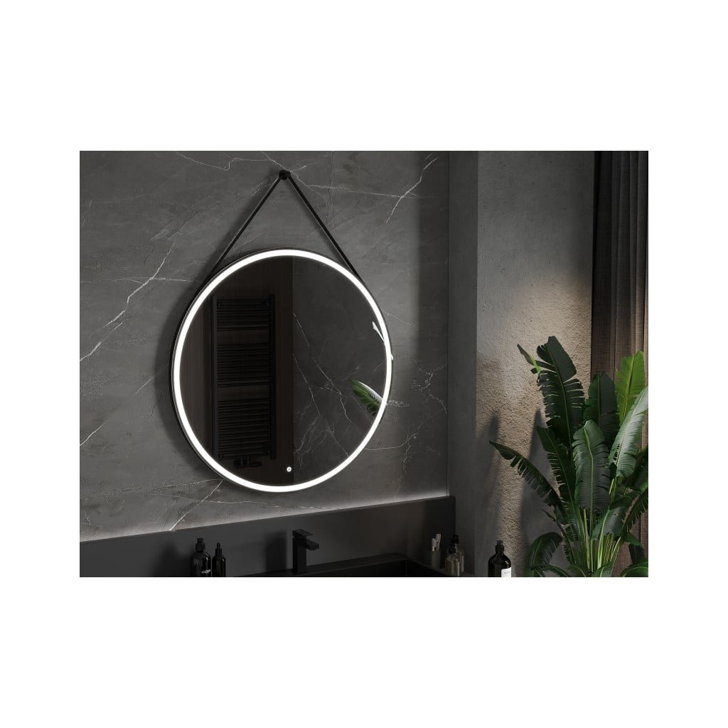 Mexen Reni, LED fürdőszobai tükör háttérvilágítással 100x100cm, 6000K, fekete keret, páramentes, 9812-100-100-611-70