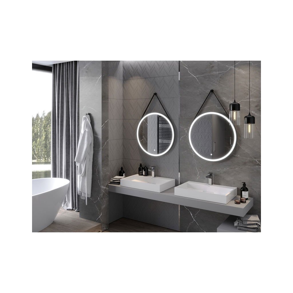 Mexen Reni, LED fürdőszobai tükör háttérvilágítással 70x70 cm, 6000K, fekete keret, páramentes, 9812-070-070-611-70