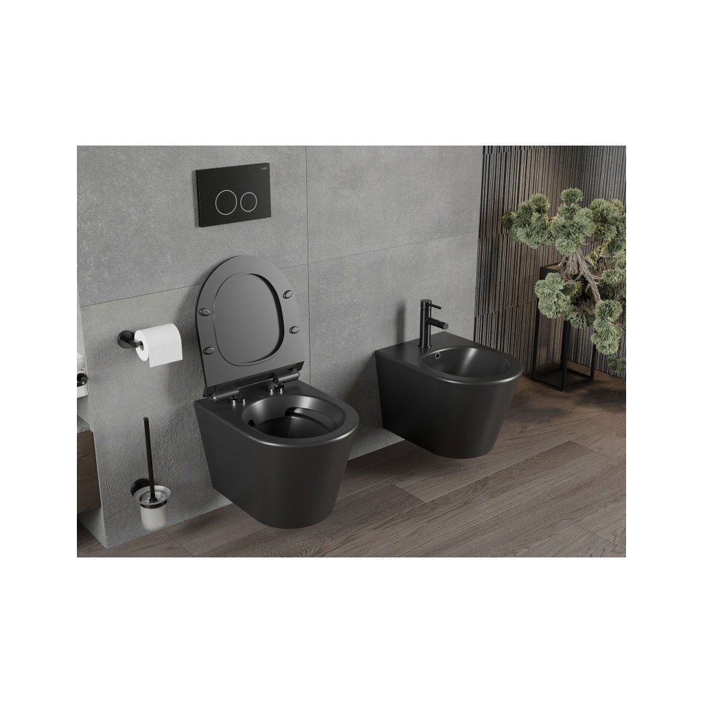 Mexen Rico fali vécé pereme nélküli WC ülőkével Vékony hőre keményedő, matt fekete - 30720185