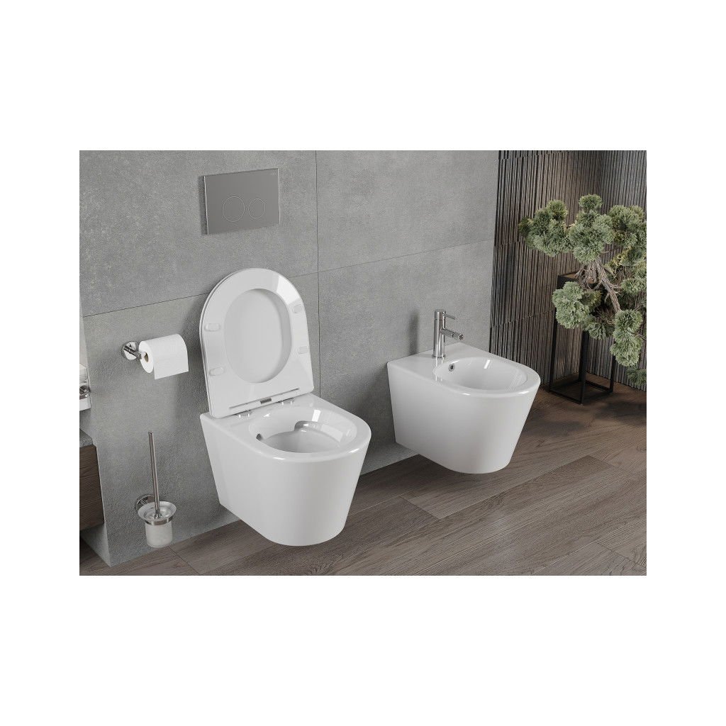Mexen Rico fali perem nélküli WC karcsú, hőre keményedő vécéülőkével, fehér - 30720300