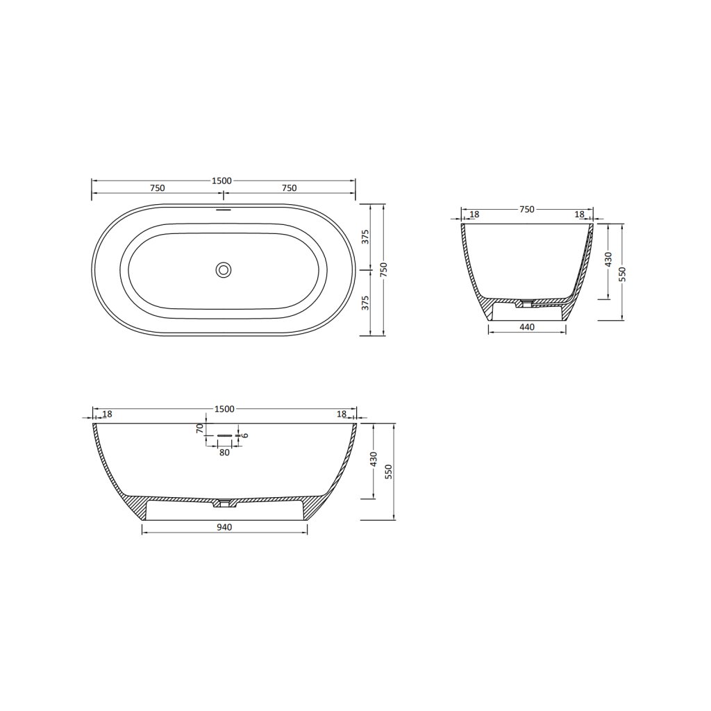 Mexen Rimini, szabadon álló konglomerátum kád 150 x 75 cm, fehér matt, 57241507500