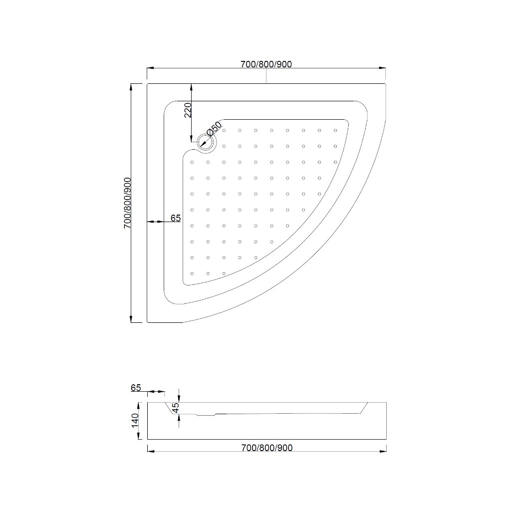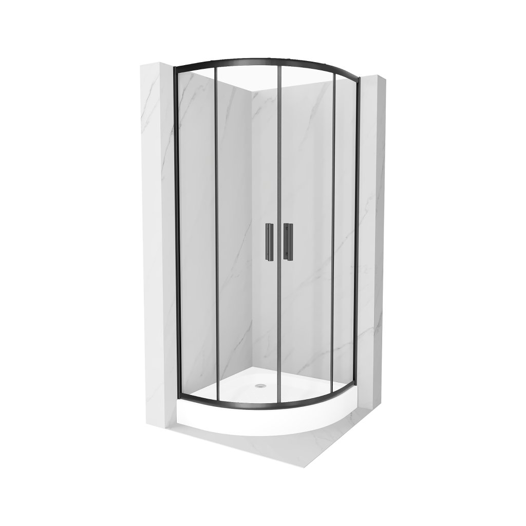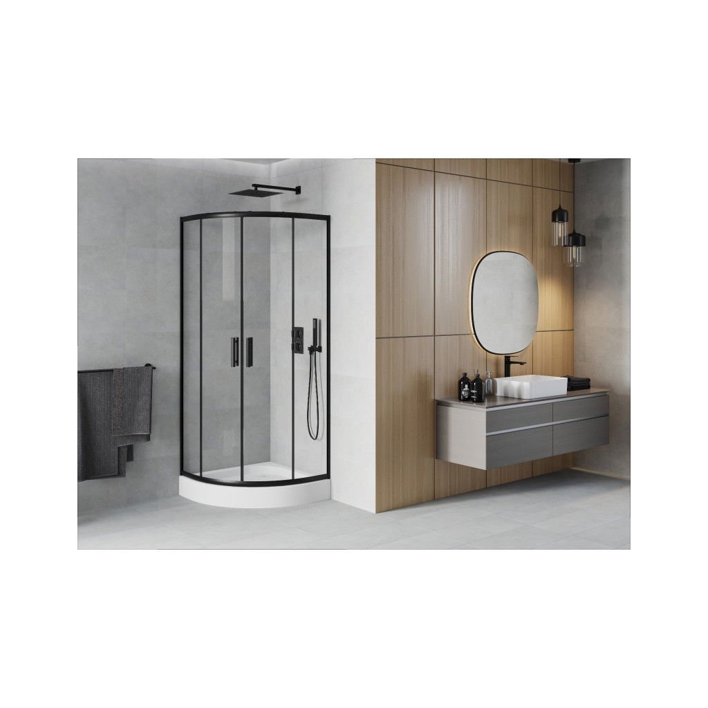 Mexen Rio, negyed kerek zuhanykabin tolóajtóval 70 x 70 cm, 5mm átlátszó üveg, fekete profil + fehér magas zuhanytálca Rio, 863-070-070-70-00-4710