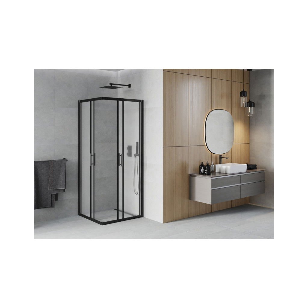 Mexen Rio, tolóajtós zuhanykabin 90x90x190 cm, 5 mm-es matt üveg, fekete profil, 860-090-090-70-30