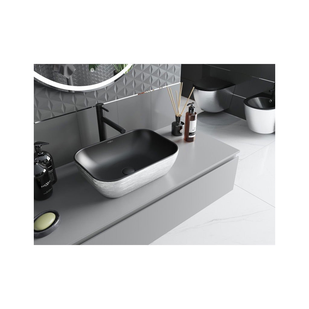 Mexen Rita, asztali mosogató 45x32x14 cm, fekete matt-ezüst mintás, 21084573