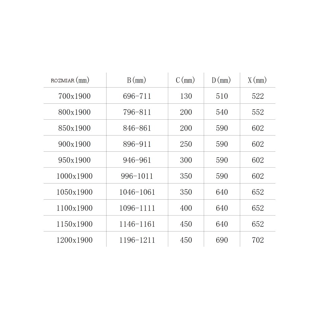 A MEXEN ROMA 90 cm széles zuhanyajtók 6 mm vastag átlátszó üvegből készülnek. Csempe vagy zuhanytálcára történő felszerelésre tervezték, univerzális változatban - jobbra vagy balra. A felhasznált üveg biztonságos, edzett és speciális bevonattal van bevonva, amely megkönnyíti a tisztítást. A széleit fényes krómcsíkok díszítik. Az ajtók fém fogantyúkkal rendelkeznek. A szerelés során lehetőség van a szélesség beállítására és a fal kisebb egyenetlenségeinek kompenzálására. A készlet tartalma: egy vízelvezető tömítés készlet és egy küszöbérték az alumínium ajtók tömítésére. Az ajtó magassága 190 cm. Az ajtó beállítási tartománya mm-ben (min-max): 890-915.