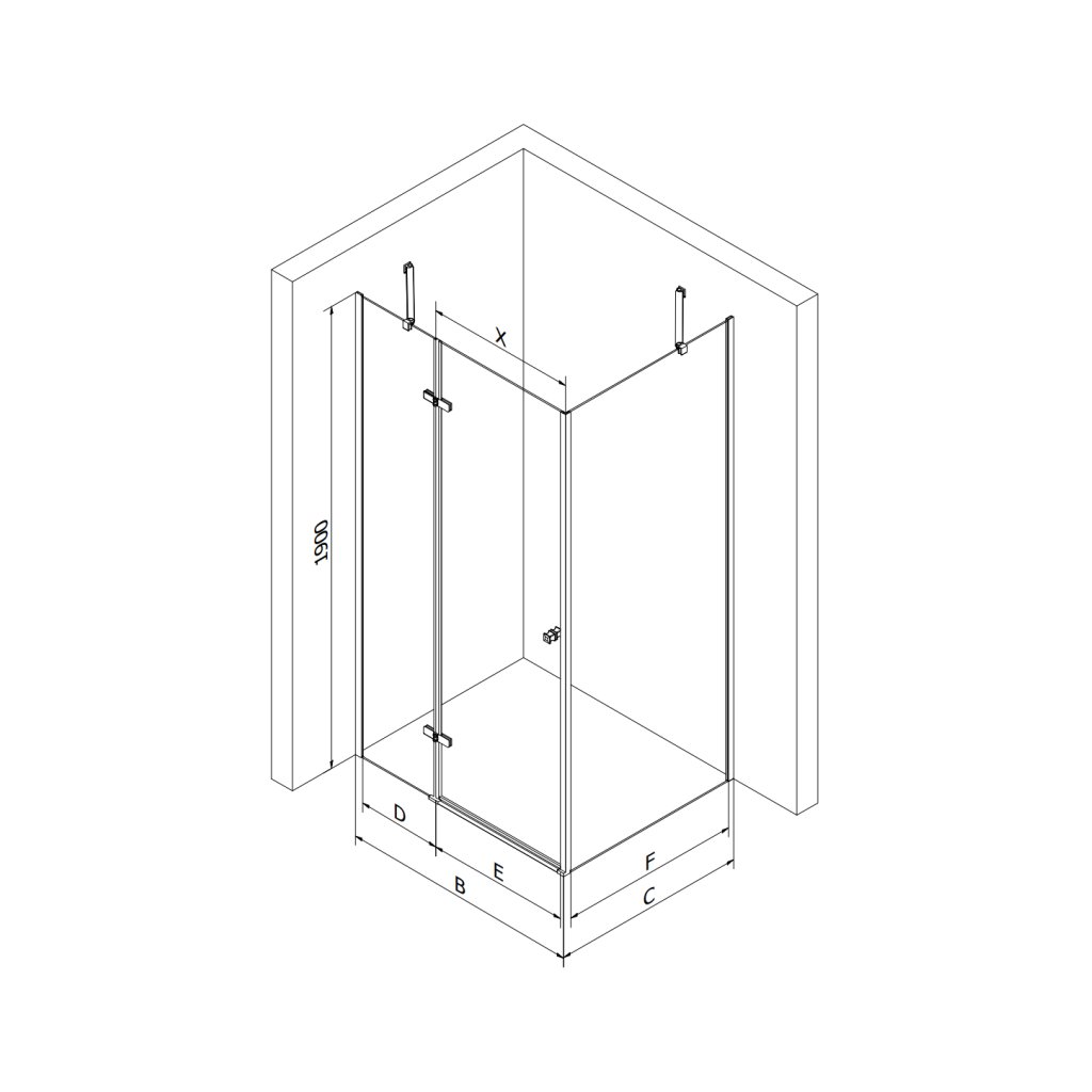 - Zuhanyajtós szakasz (B min-max): méretek az alábbi táblázatban