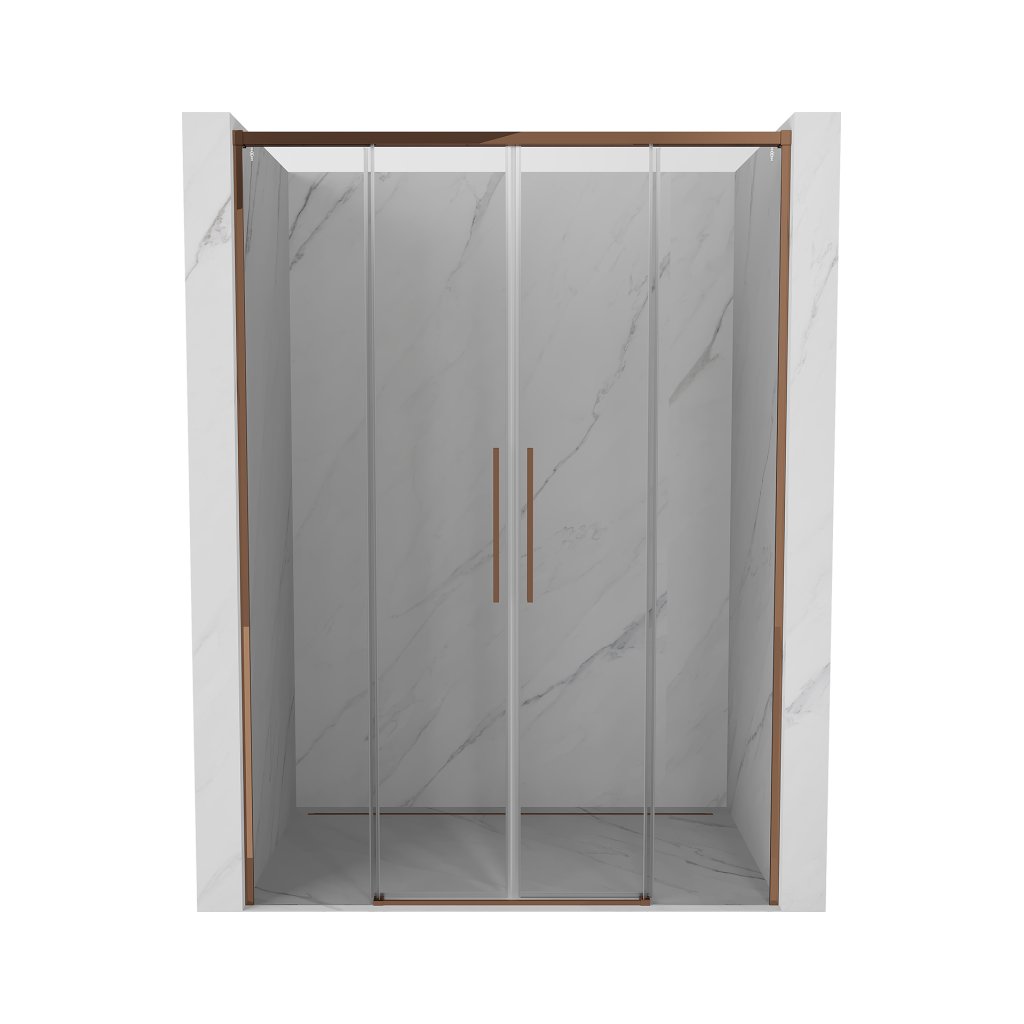 Több méretben kapható, stabil szerkezettel és tolóajtókkal rendelkezik. Az EasyClean felületű edzett üveg megkönnyíti a karbantartást, a rozéarany profil pedig illeszkedik a modern fürdőszobákba.