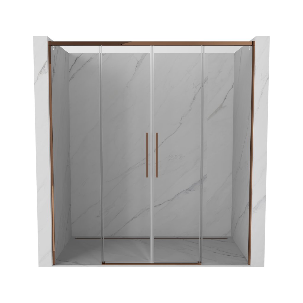 Több méretben kapható, stabil szerkezettel és tolóajtókkal rendelkezik. Az EasyClean felületű edzett üveg megkönnyíti a karbantartást, a rozéarany profil pedig illeszkedik a modern fürdőszobákba.
