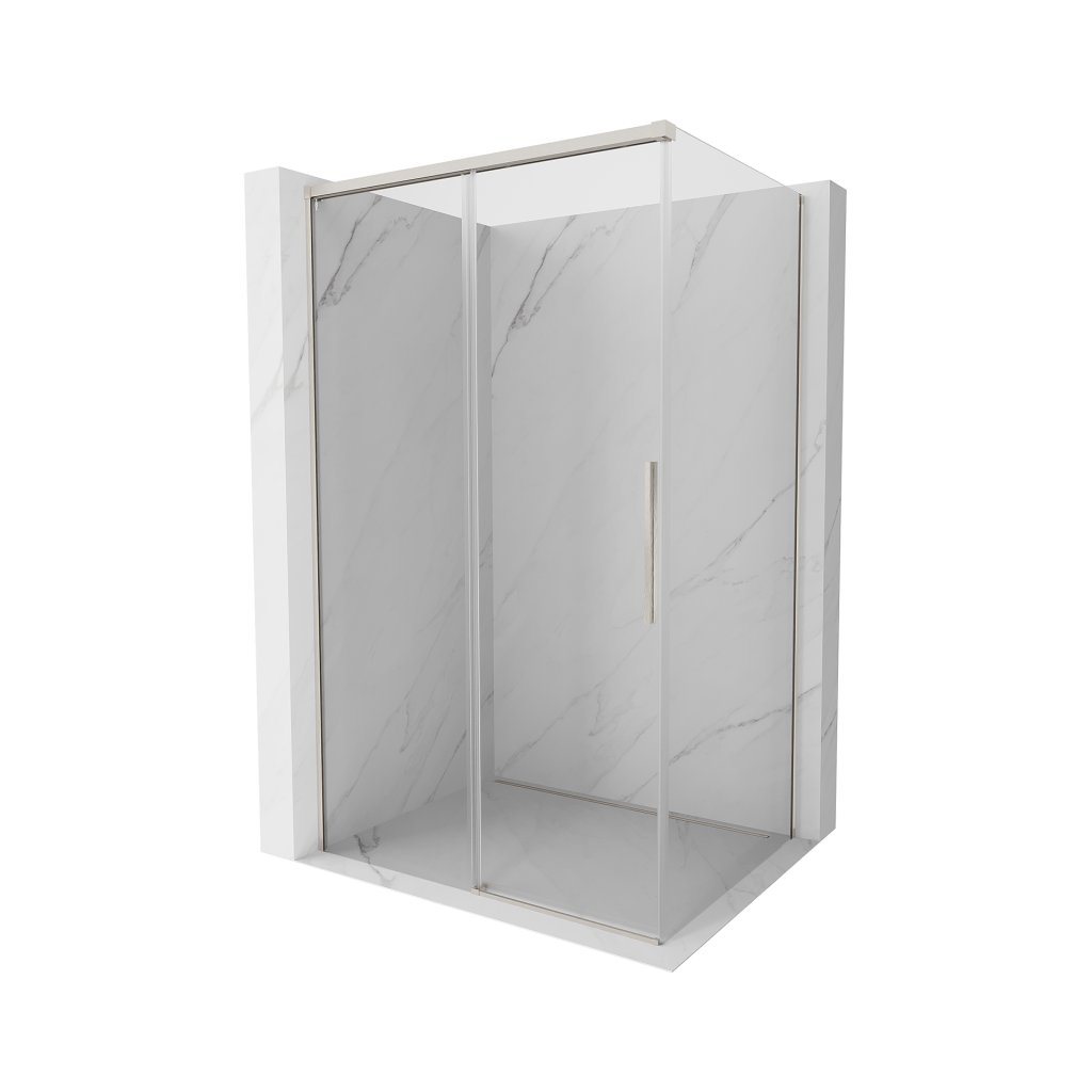 155 × 100 cm-es konfigurációban stabil szerkezetet és tolóajtókat kínál. Az EasyClean felületű edzett üveg megkönnyíti a karbantartást, a szálcsiszolt nikkel profil pedig modern fürdőszobákba illik.