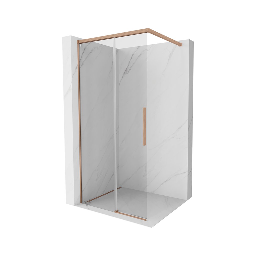 120 × 3 cm-es konfigurációjában stabil szerkezetet és ajtókat kínál. Az EasyClean felületű edzett üveg megkönnyíti a karbantartást, a szálcsiszolt réz profil pedig modern fürdőszobákba illik.