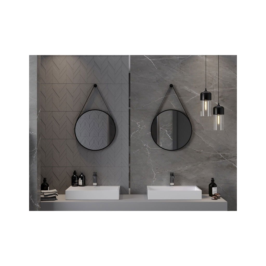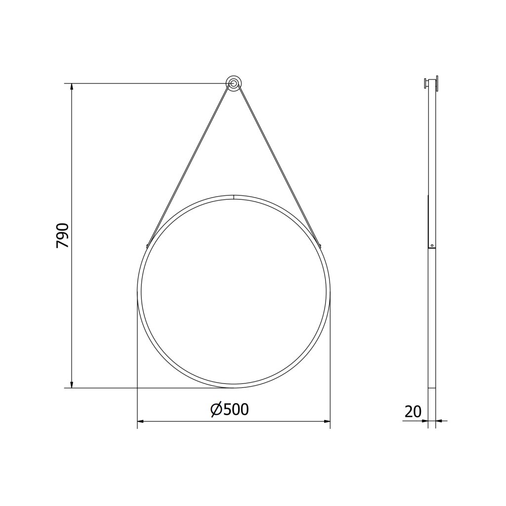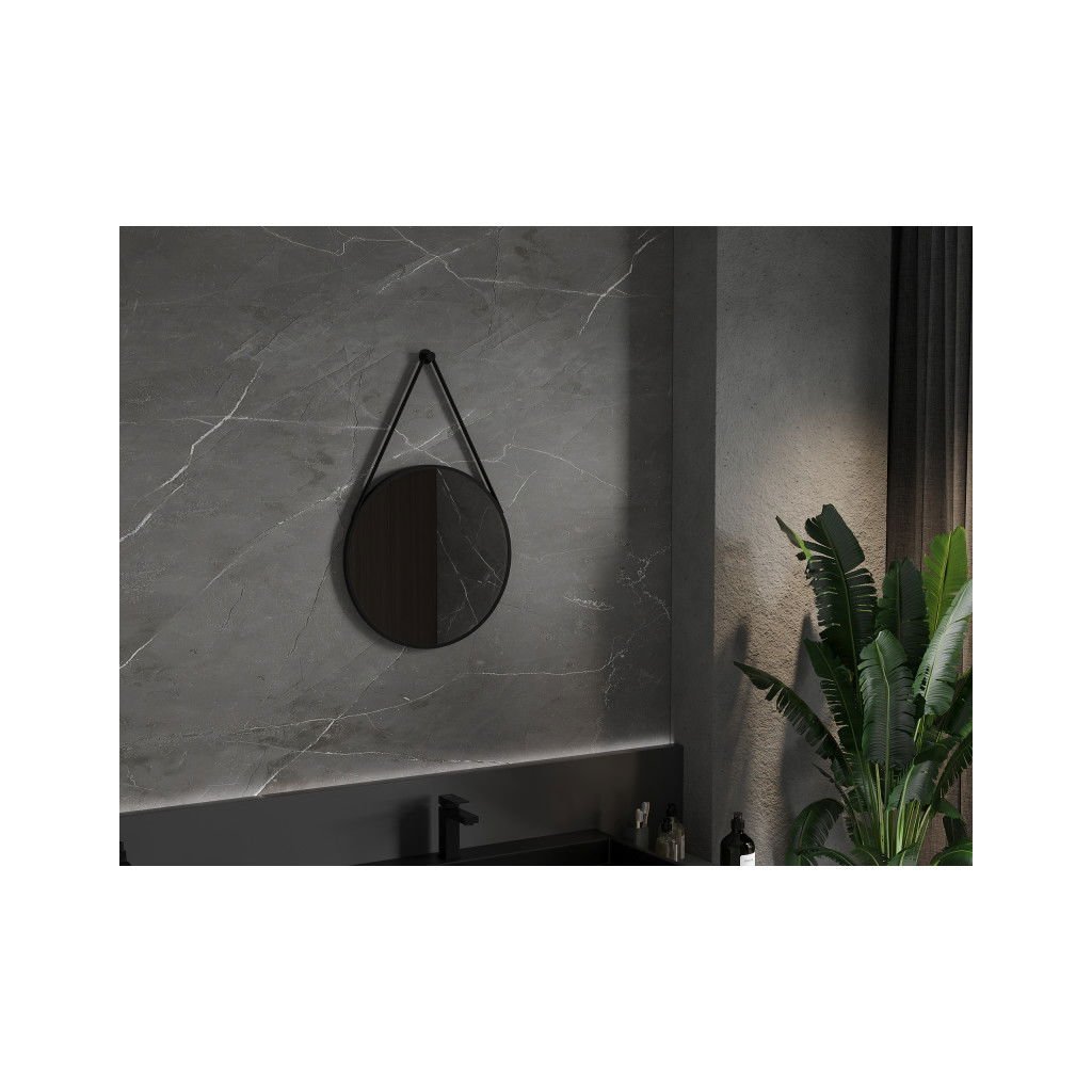 Mexen String, kerek fürdőszobai tükör csíkon 50 cm, keret színe fekete matt, 9854-050-050-000-70