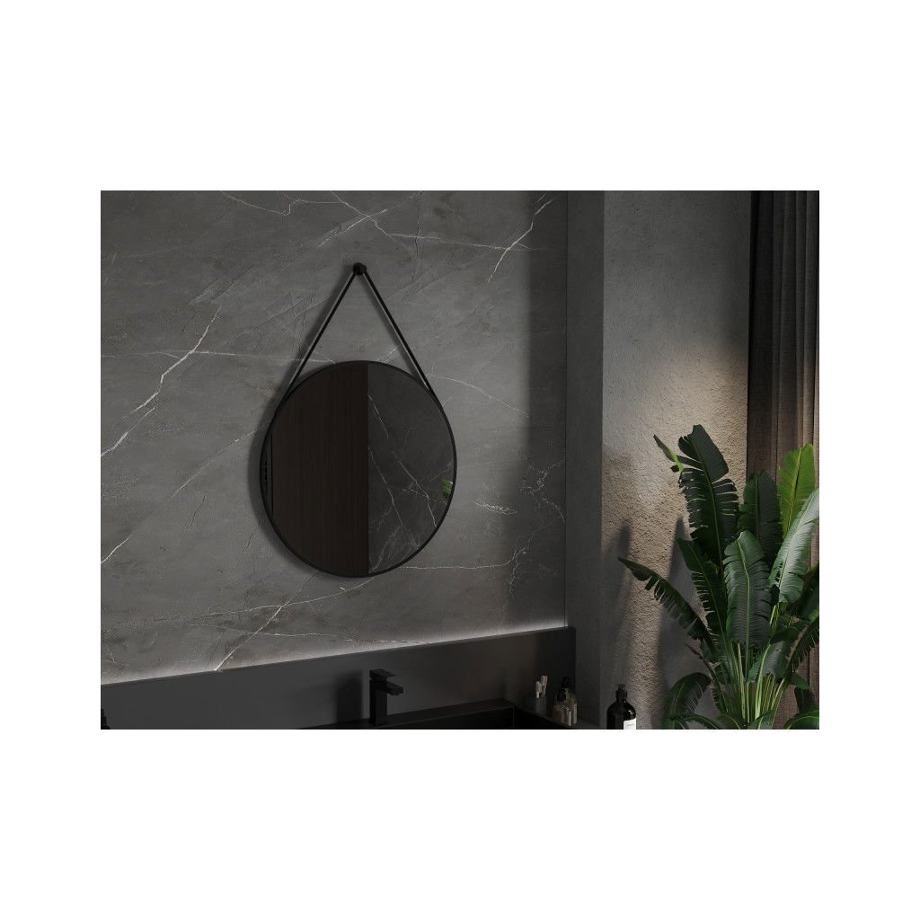 Mexen String, kerek fürdőszobai tükör csíkon 70 cm, keret színe fekete matt, 9854-070-070-000-70