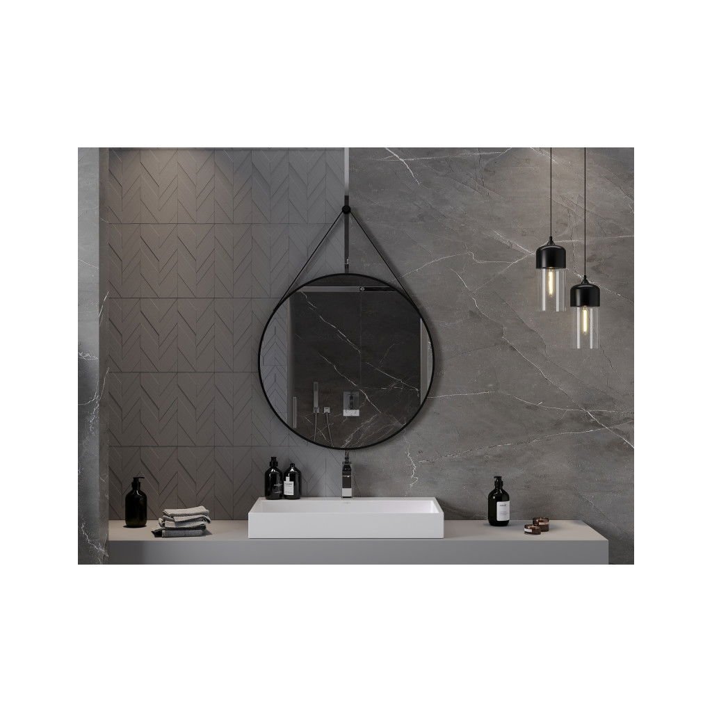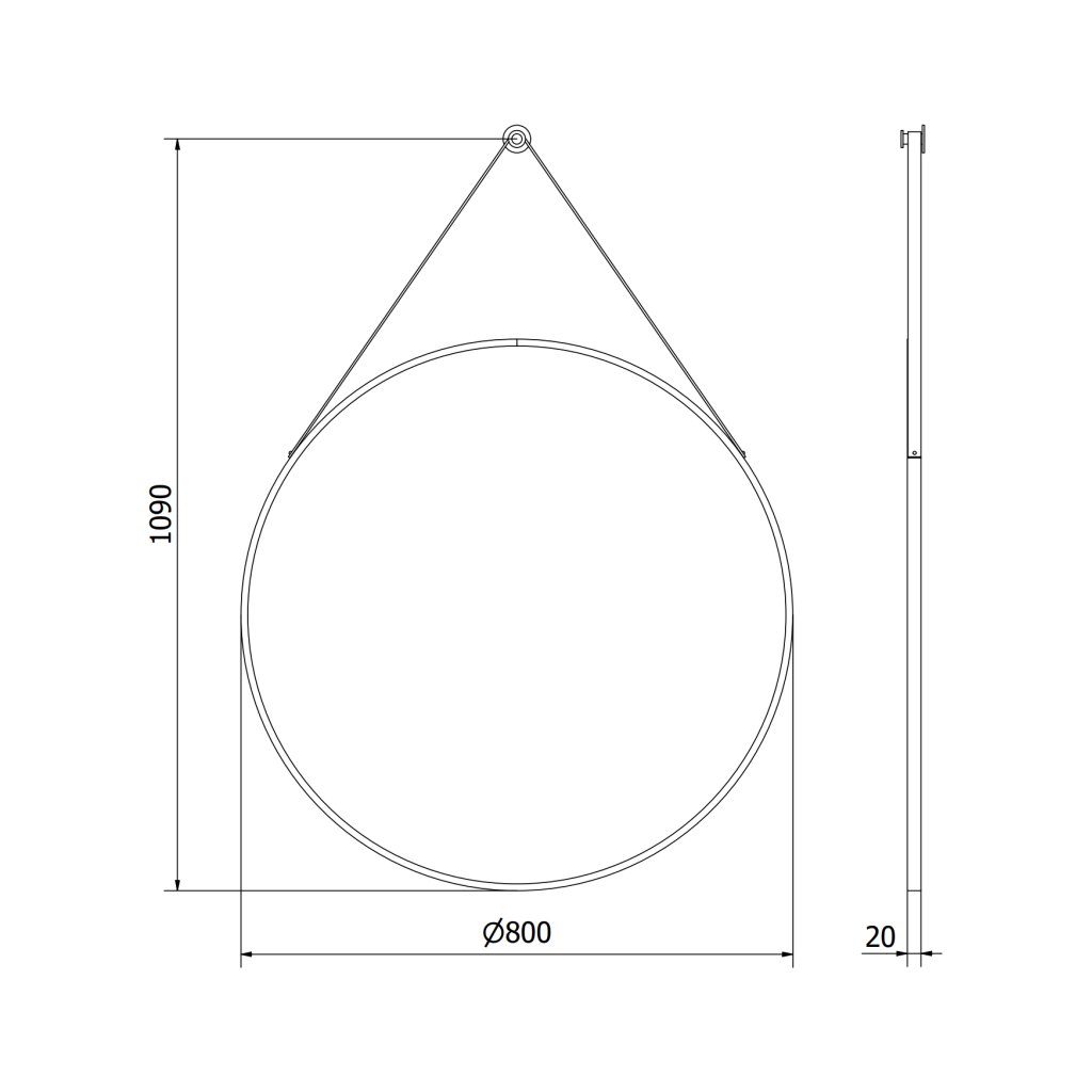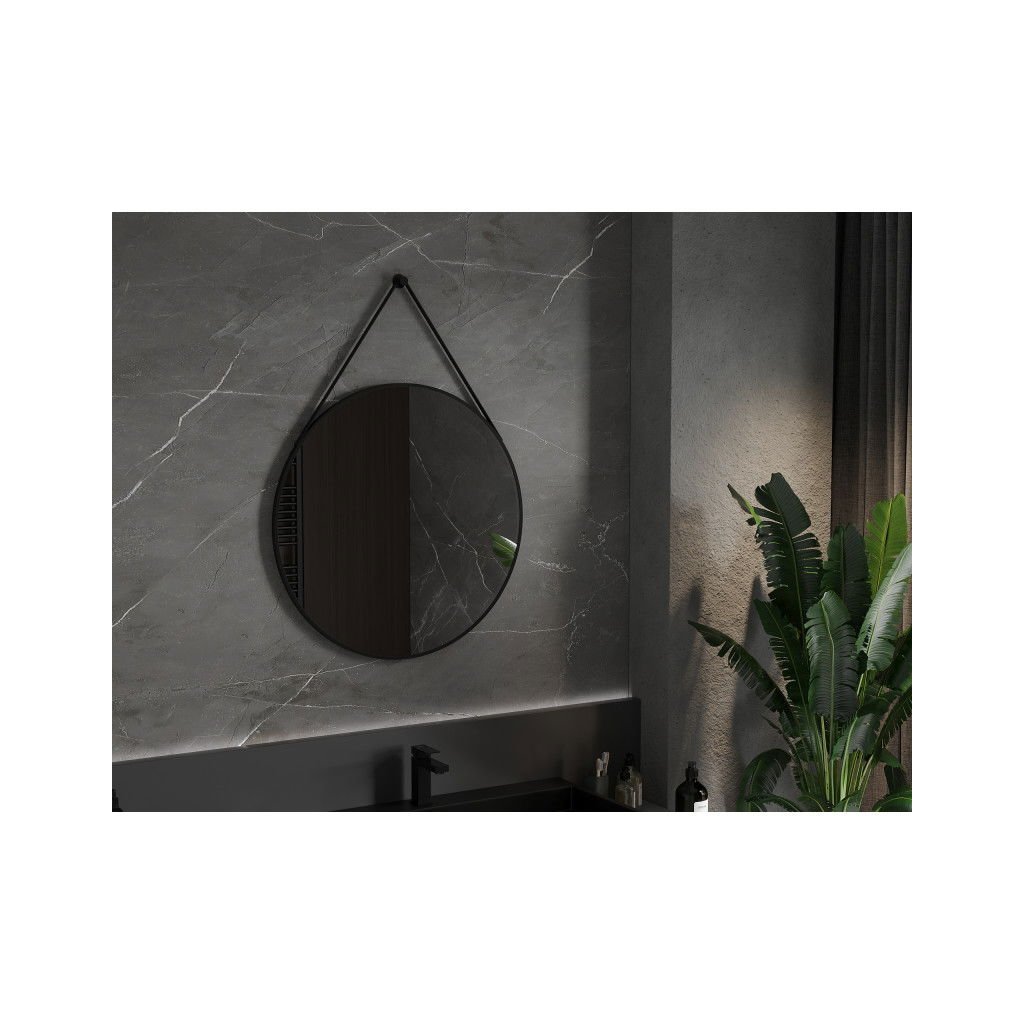 Mexen String, kerek fürdőszobai tükör csíkon 80 cm, keret színe fekete matt, 9854-080-080-000-70