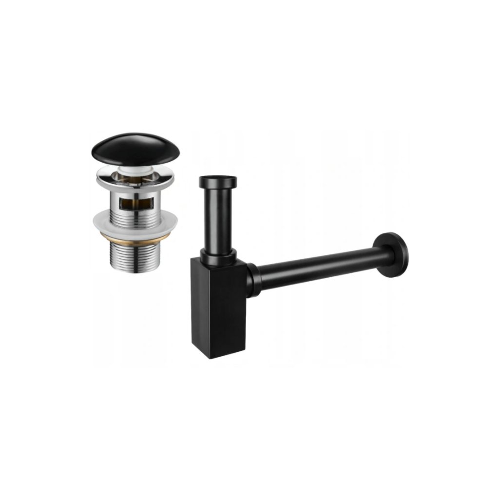 Mexen tartozékok, téglalap alakú mosdópalack szifon Click-Clack kerámia dugóval, túlfolyóval, fekete matt, 7992060-75