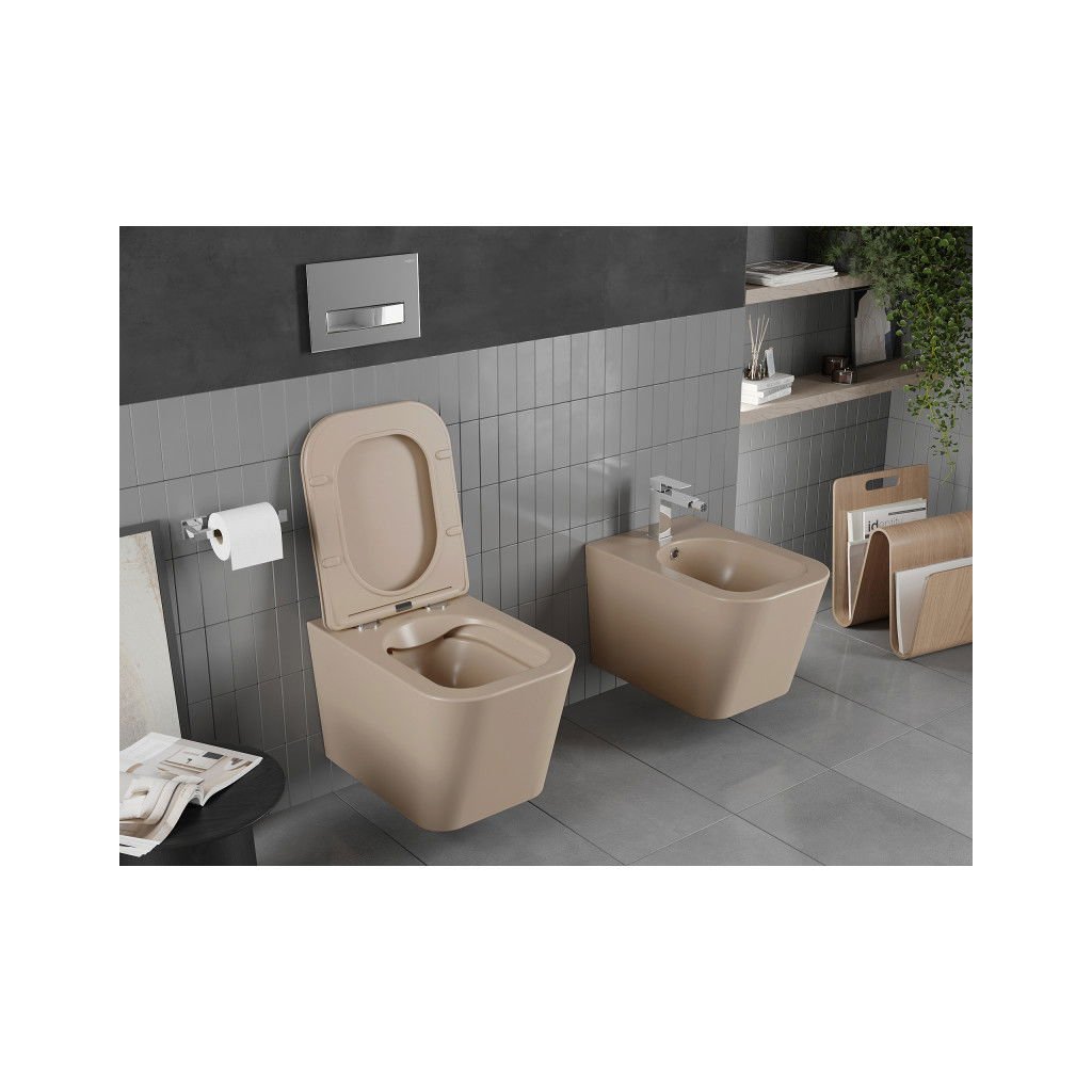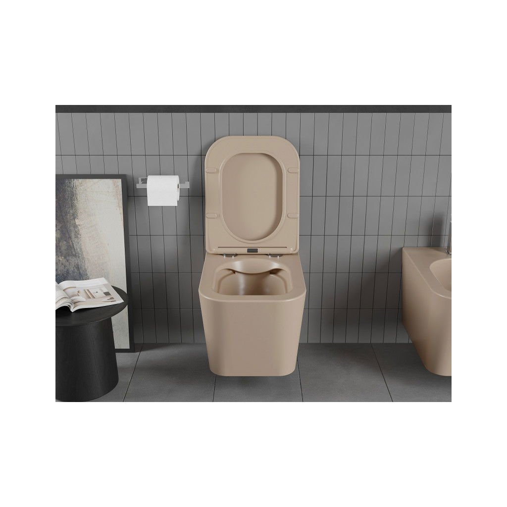 Mexen Teo Rimless, falra szerelhető WC csésze 51x34,5x34 cm, duroplasztból készült lassú ütésű ülőfelülettel, cappuccino matt, 30854064