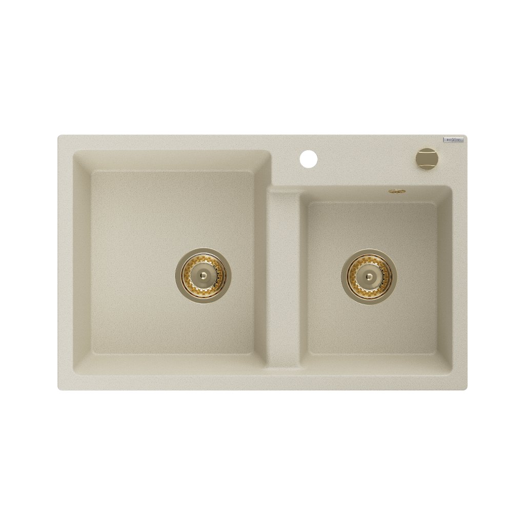 Mexen Tomas, gránit mosogató 800x500x190 mm, 2 kamrás, bézs, arany szifonnal, 6516802000-69-G