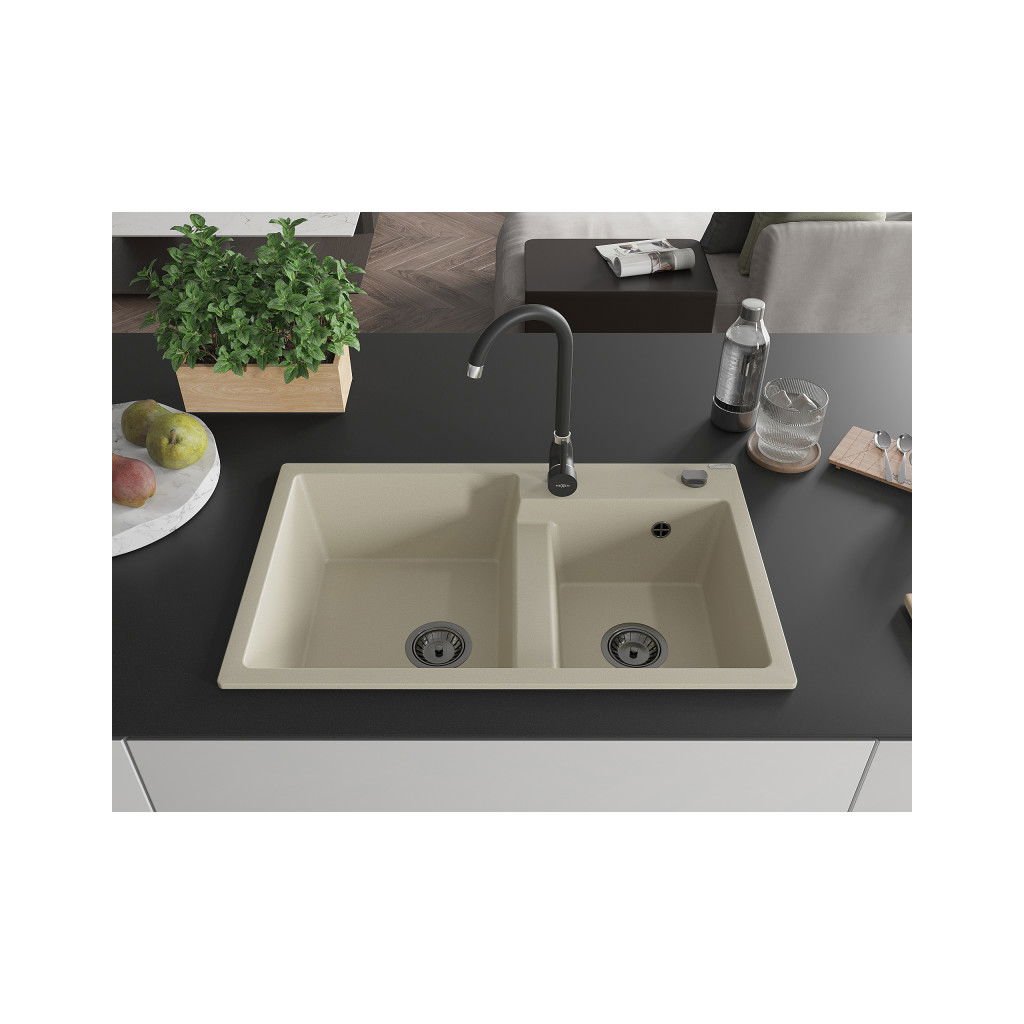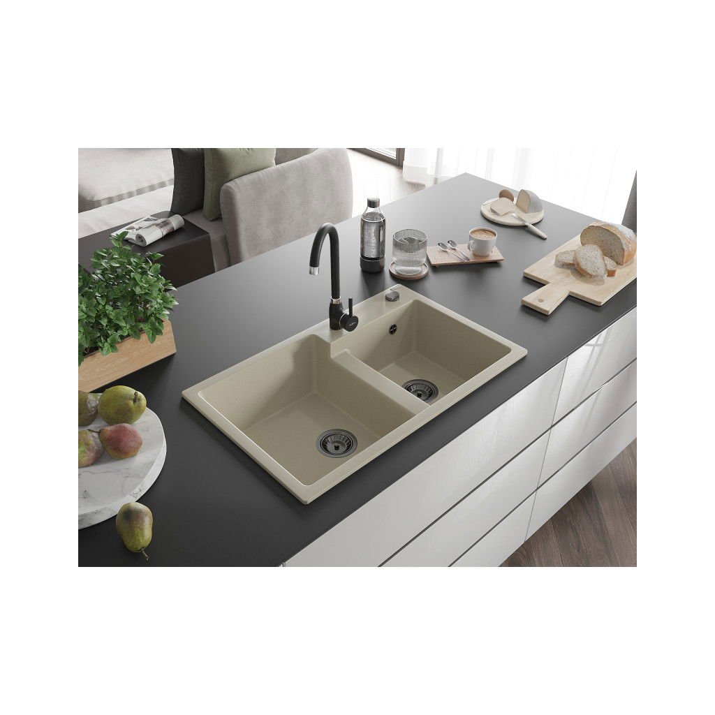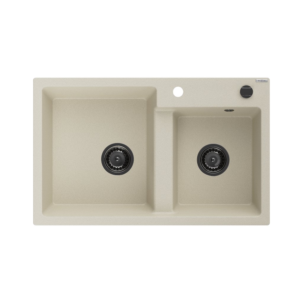 Mexen Tomas, gránit mosogató 800x500x190 mm, 2 kamrás, bézs, fekete szifonnal, 6516802000-69-B