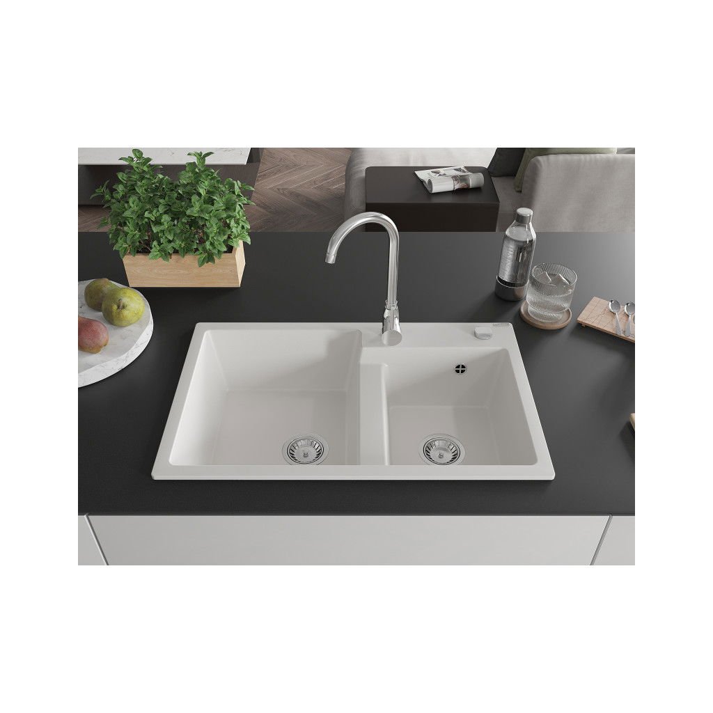Mexen Tomas, gránit mosogató 800x500x190 mm, 2 kamrás, fehér, 6516802000-20