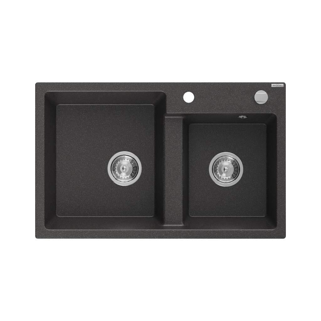 Mexen Tomas, gránit mosogató 800x500x190 mm, 2 kamrás, fekete foltos, 6516802000-76