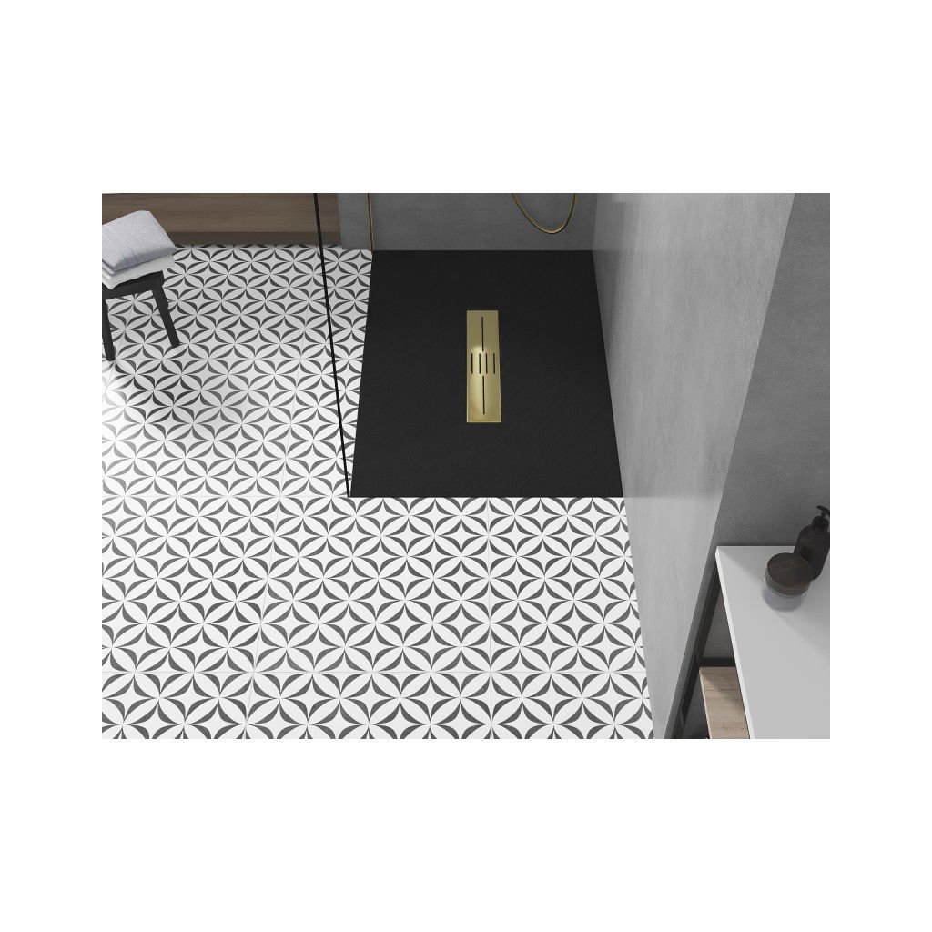 Mexen Toro, SMC téglalap alakú zuhanytálca 110 x 70 cm, fekete, arany kupak, 43707011-G