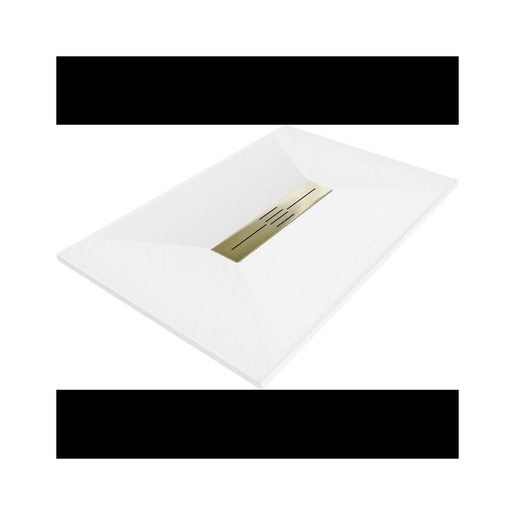 Mexen Toro, SMC téglalap alakú zuhanytálca 120 x 70 cm, fehér, arany kupak, 43107012-G