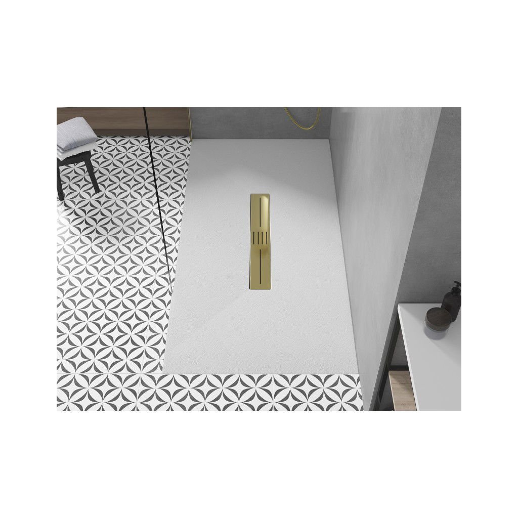 Mexen Toro, SMC téglalap alakú zuhanytálca 160 x 70 cm, fehér, arany kupak, 43107016-G