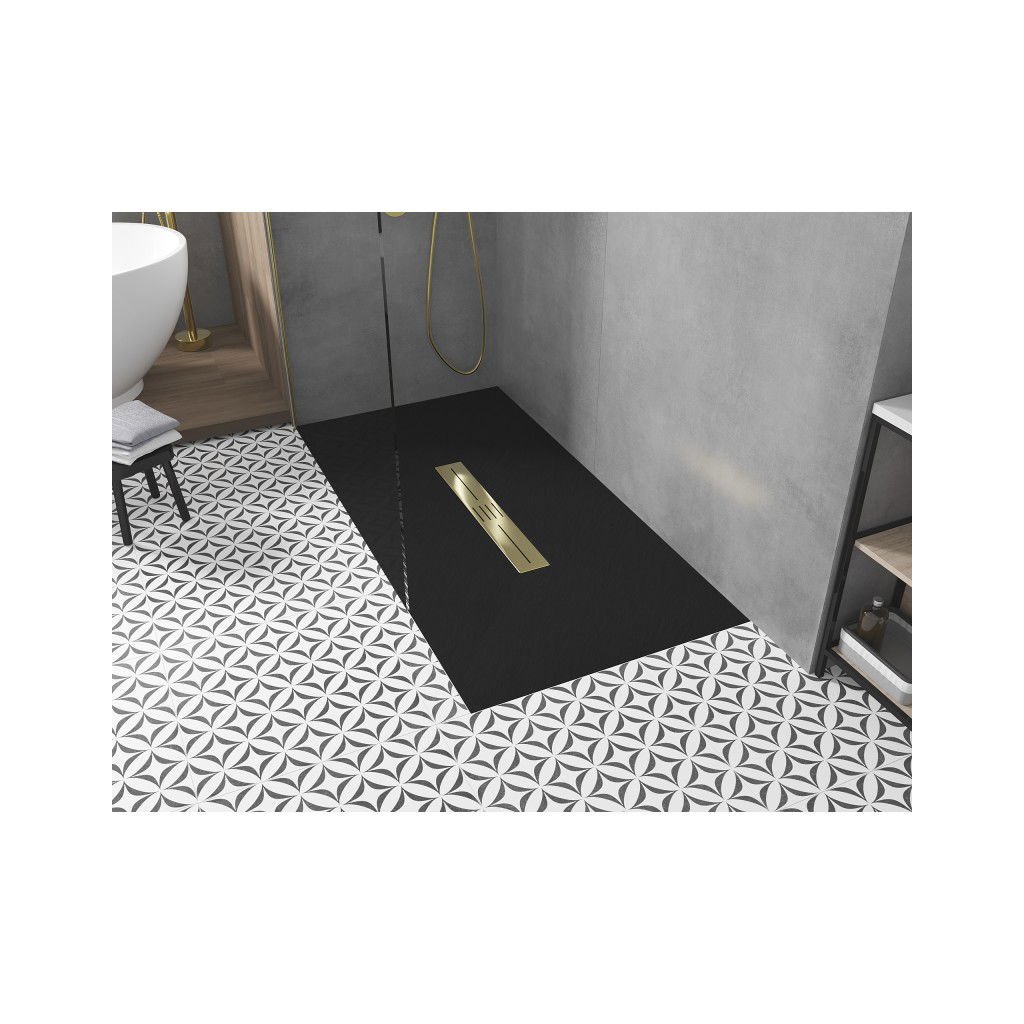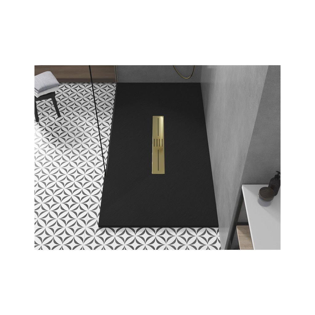 Mexen Toro, SMC téglalap alakú zuhanytálca 180 x 70 cm, fekete, arany kupak, 43707018-G