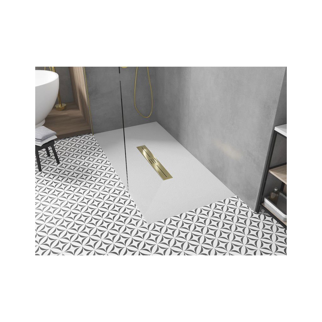Mexen Toro, SMC téglalap alakú zuhanytálca 180 x 80 cm, fehér, arany kupak, 43108018-G