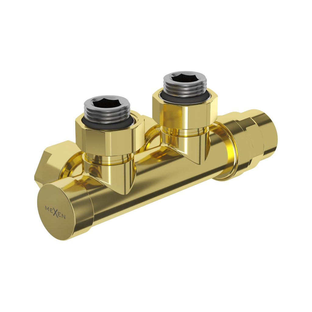 Mexen Uni-term, sarokszelep radiátorhoz 50 mm-es osztással, kétoldalas, aranyfényes, W907-000-50