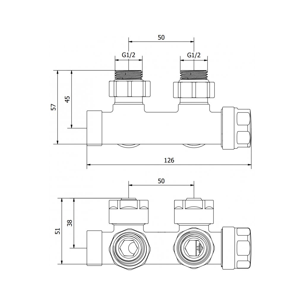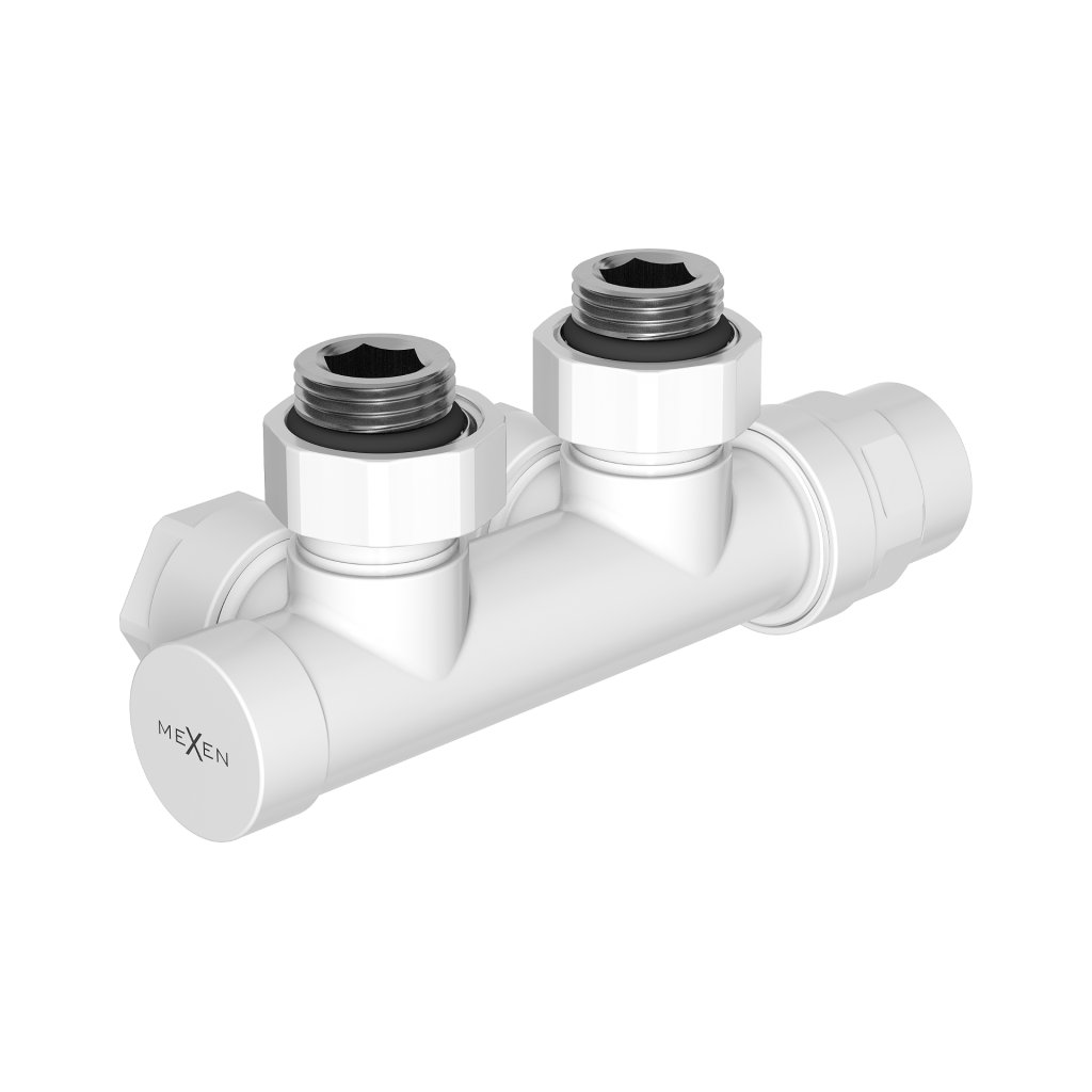 Mexen Uni-term, sarokszelep radiátorhoz 50 mm-es osztással, mindkét oldalon, fehér, W907-000-20